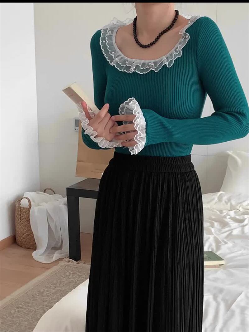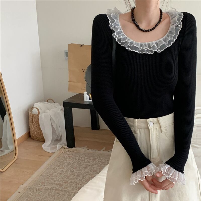 2023春INS新作★ins超人気 レトロ おしゃれ レース飾り ニット/セーター