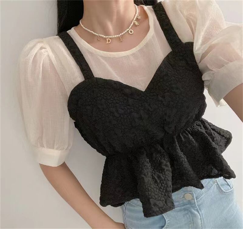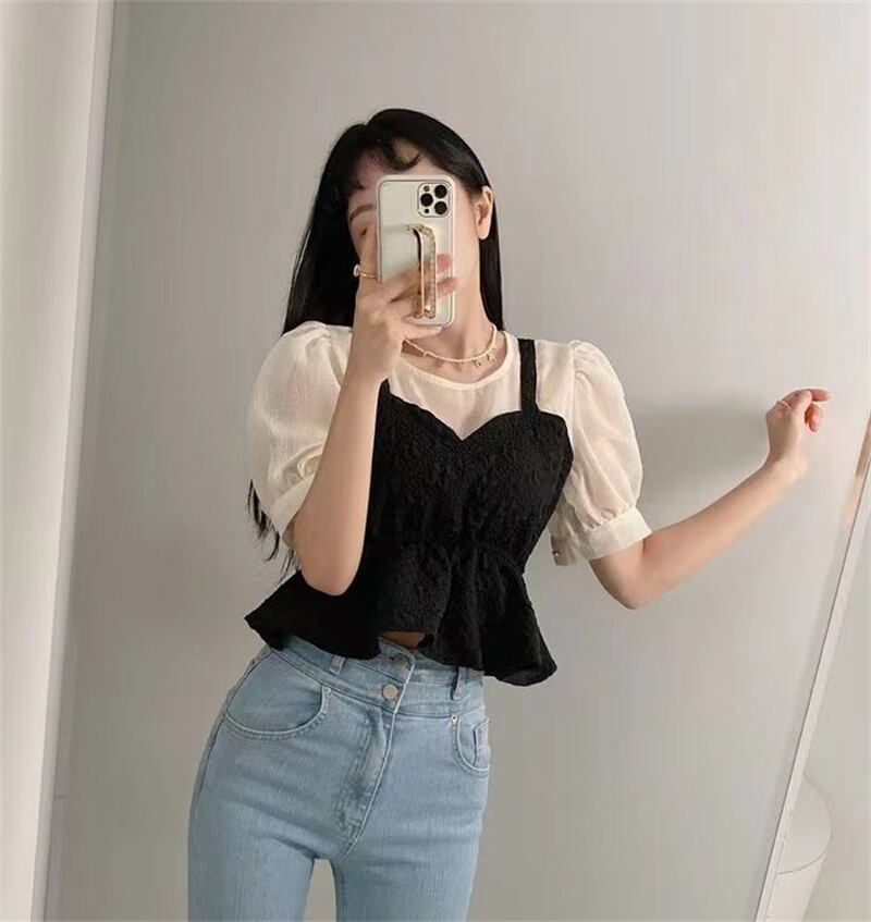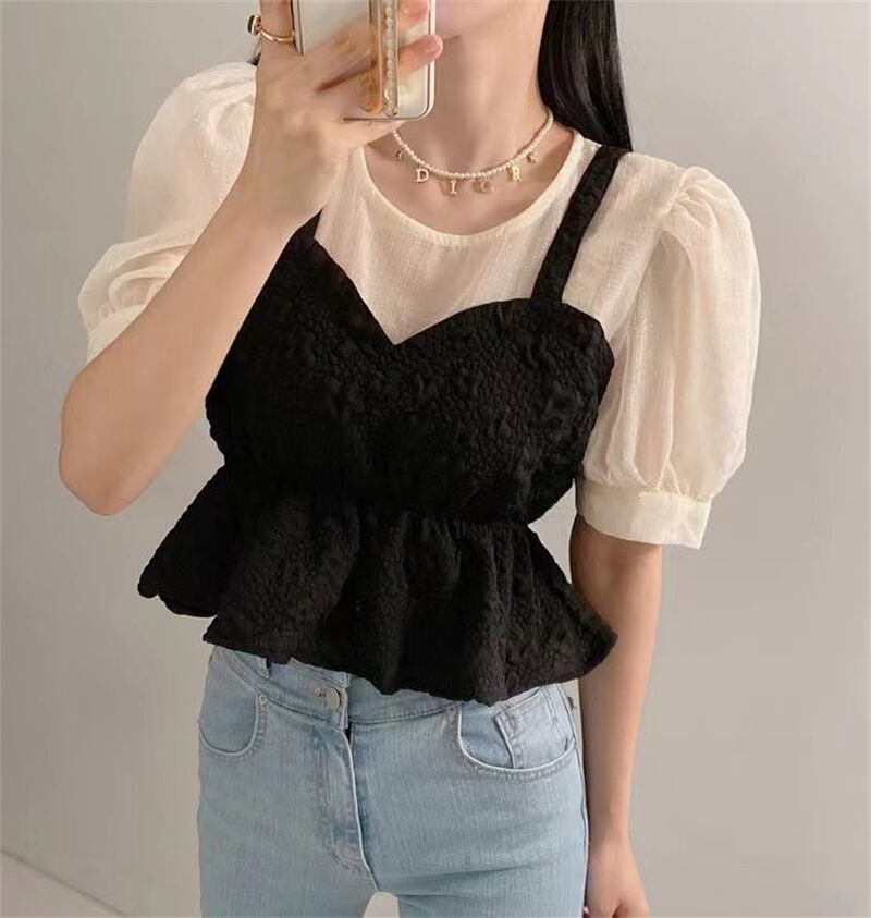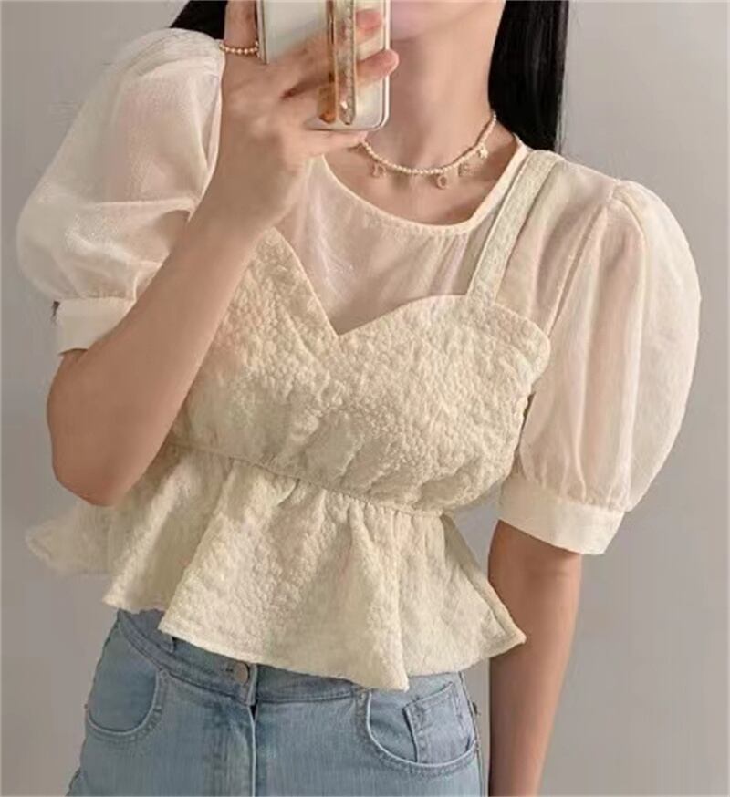 2023春INS新作★ins超人気 レトロ おしゃれ 偽2枚 シャツ/ブラウス