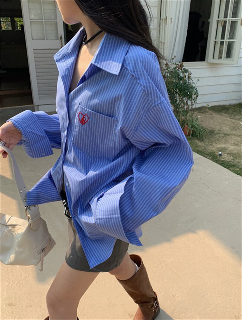 2023春INS新作★ins超人気 レトロ おしゃれ ストライプ柄 シングルブレスト シャツ/ブラウス