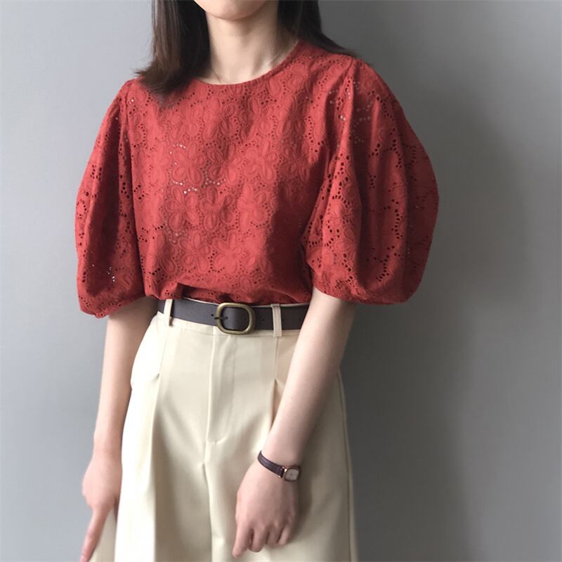 2023春INS新作★ins超人気 レトロ トップス 透かし彫り シャツ/ブラウス
