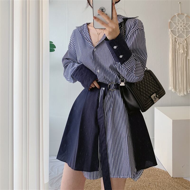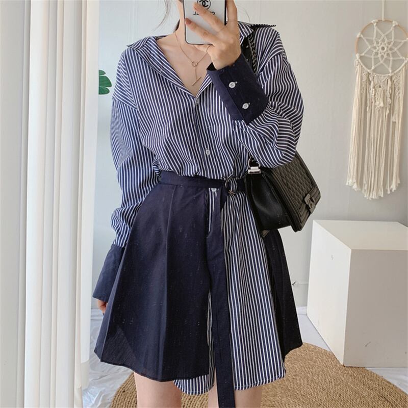 2023春INS新作★ins超人気 韓国系 デザイン性抜群 ストライプ柄 セットアップ ワンピース