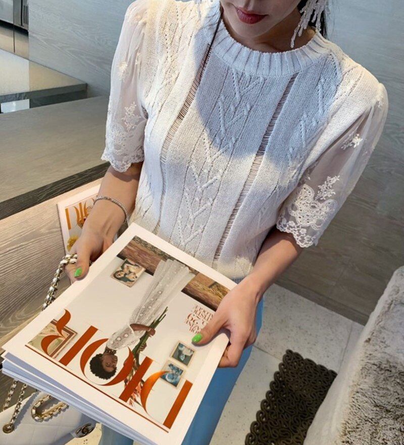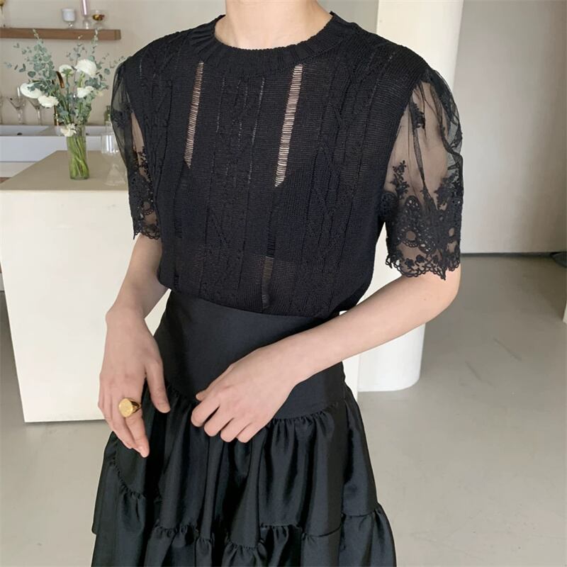 2023春INS新作★ins超人気 韓国系 デザイン性抜群 レース飾り ニット シャツ