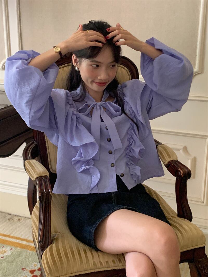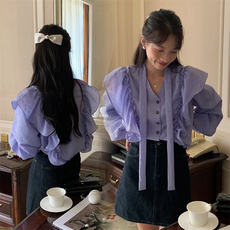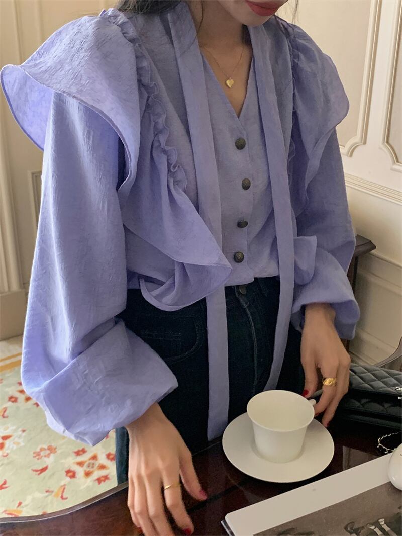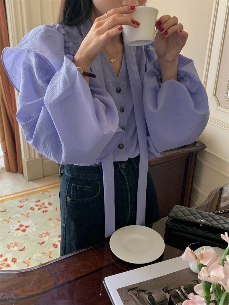 2023春INS★ 優しい デザイン感 フリル パーブル カジュアル シャツ 花袖