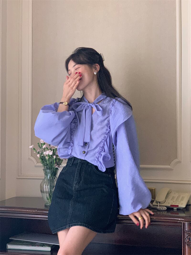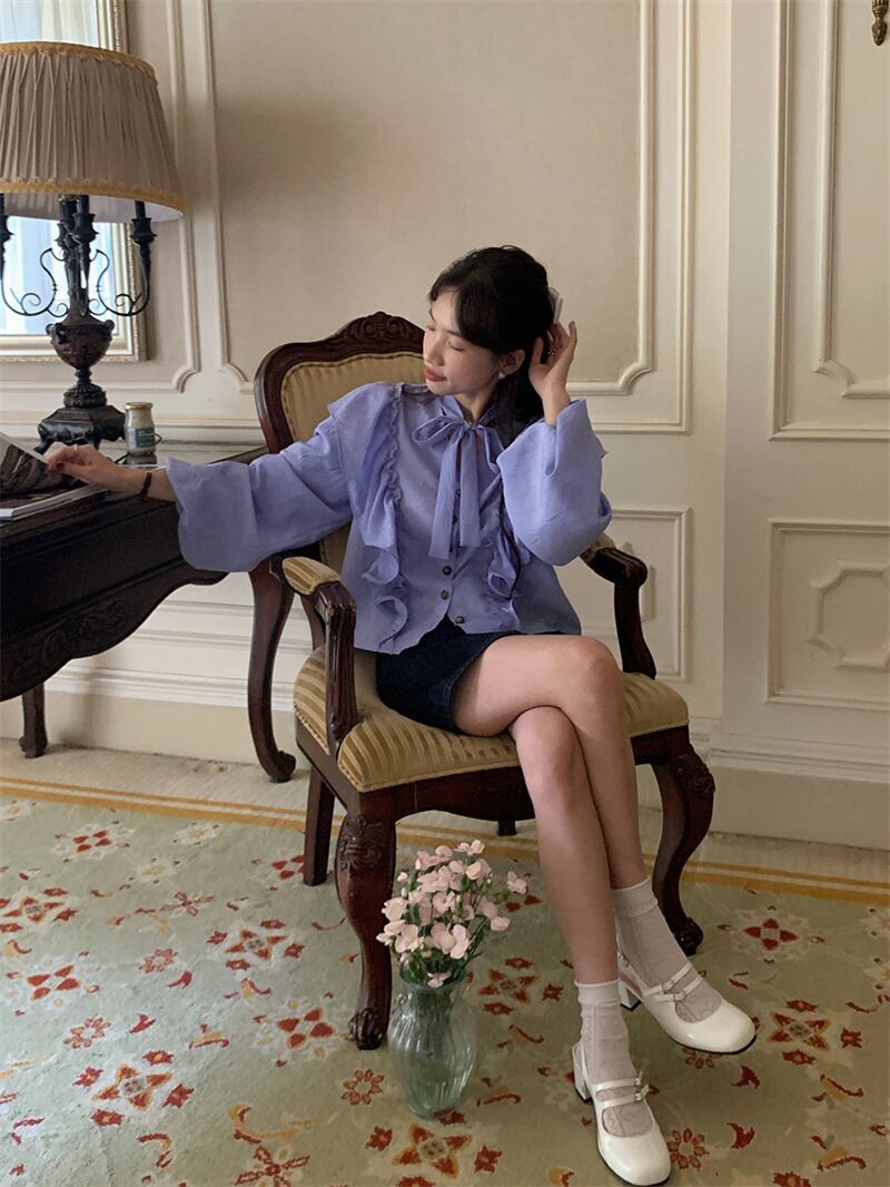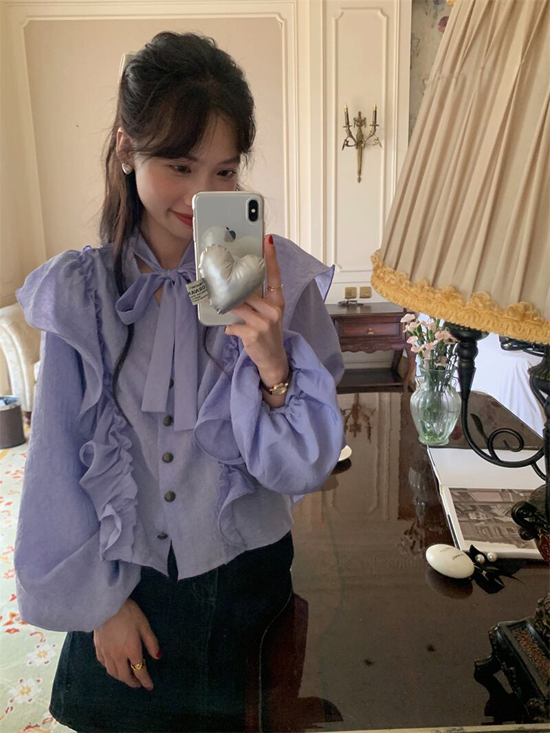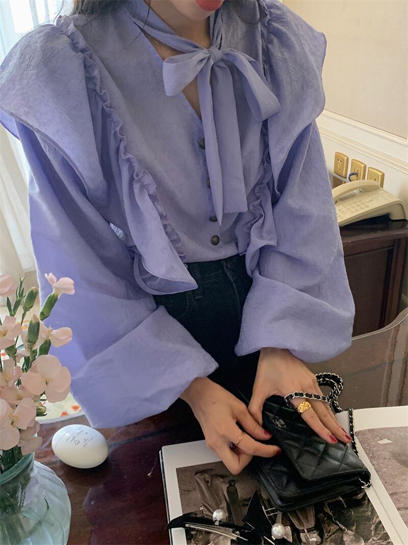 2023春INS★ 優しい デザイン感 フリル パーブル カジュアル シャツ 花袖