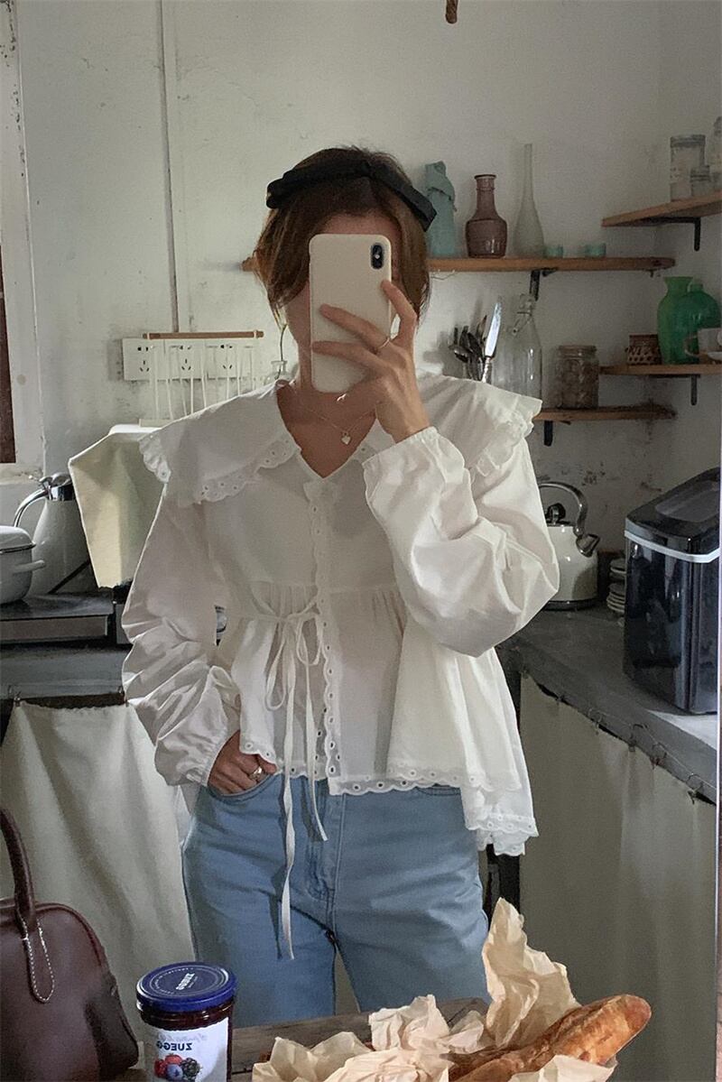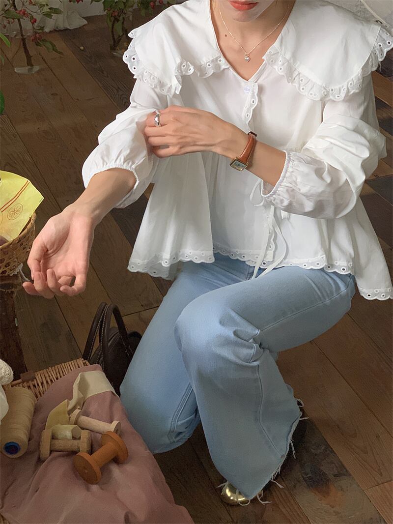 2023春INS★ 優しい スウィート フリル 薄手 カジュアル シャツ 花袖