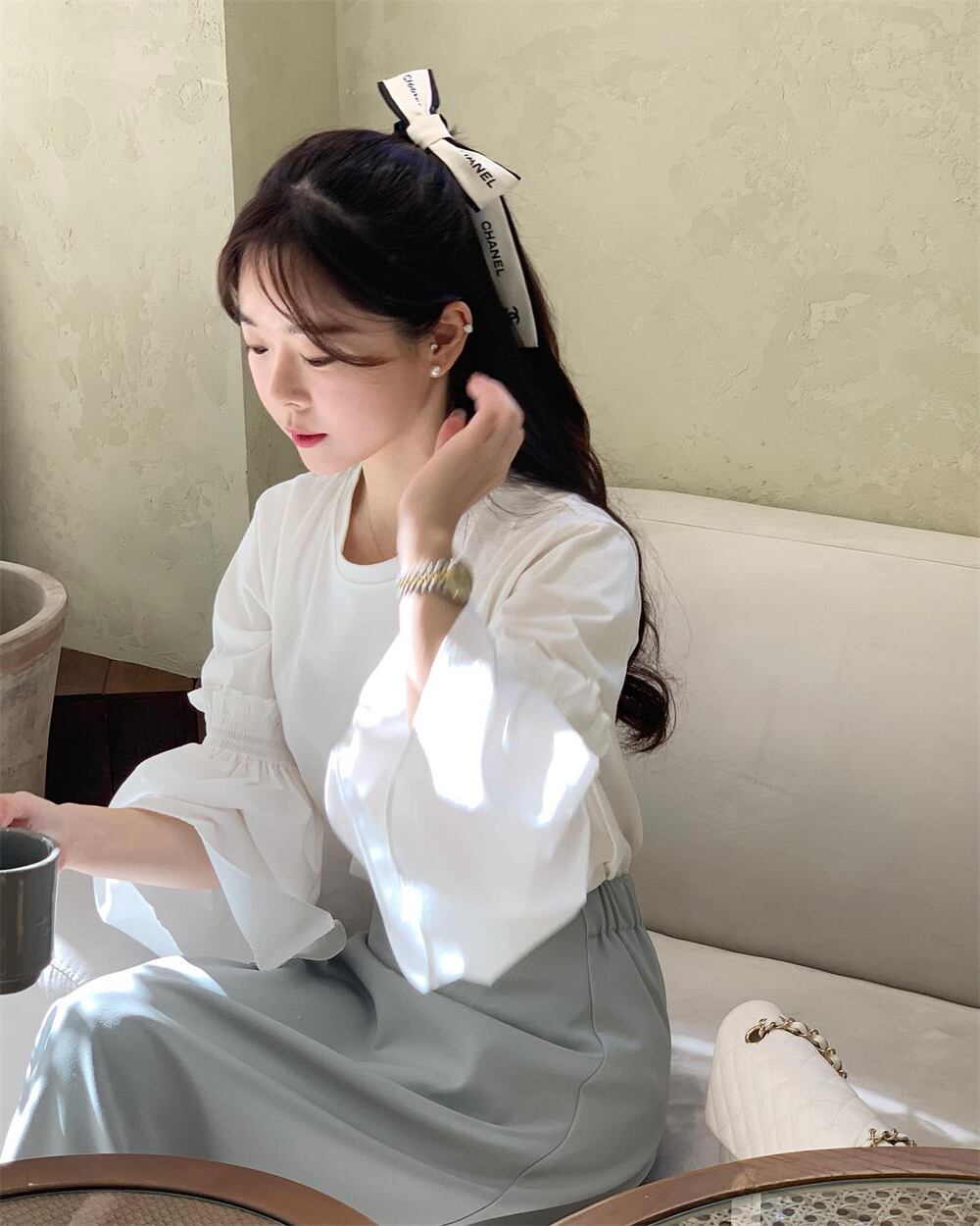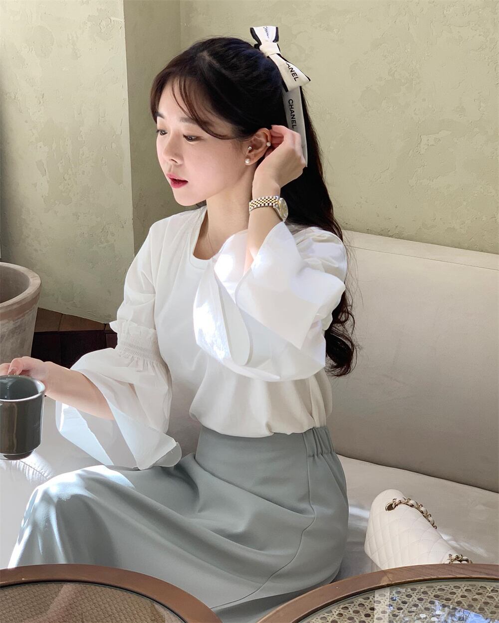 2023春INS★超気質 上品さたっぷり エレガント シャツ セミロングスカート