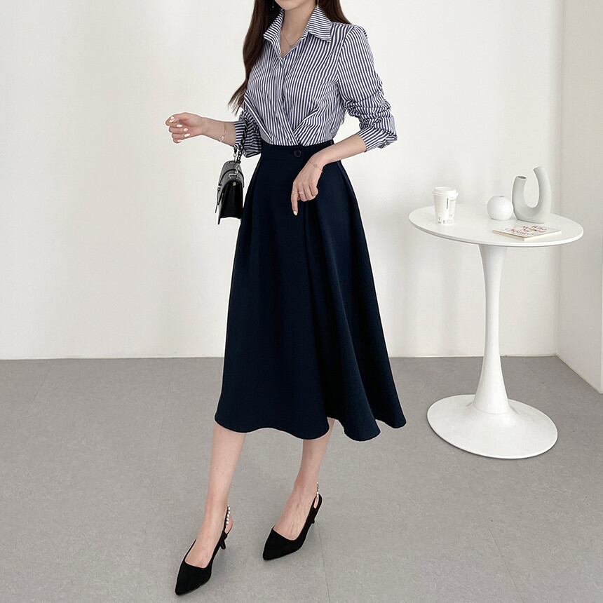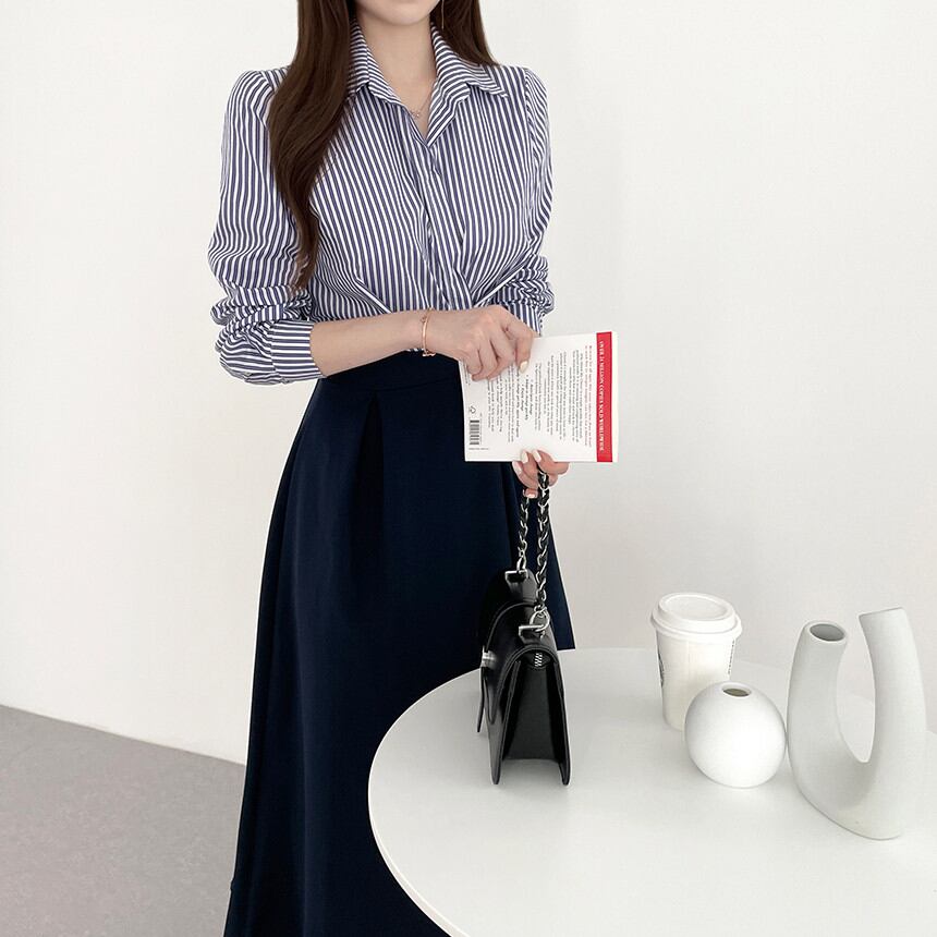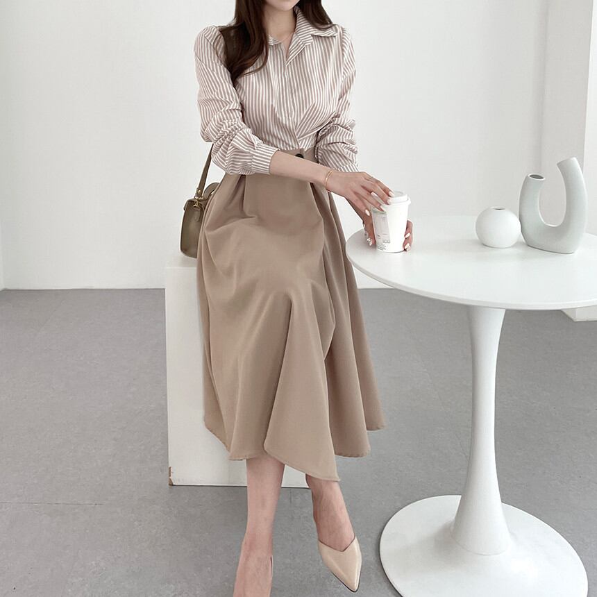 2023春INS★レイジー風 デザイン感 ストライプ 柄 シャツワンピース スプライス