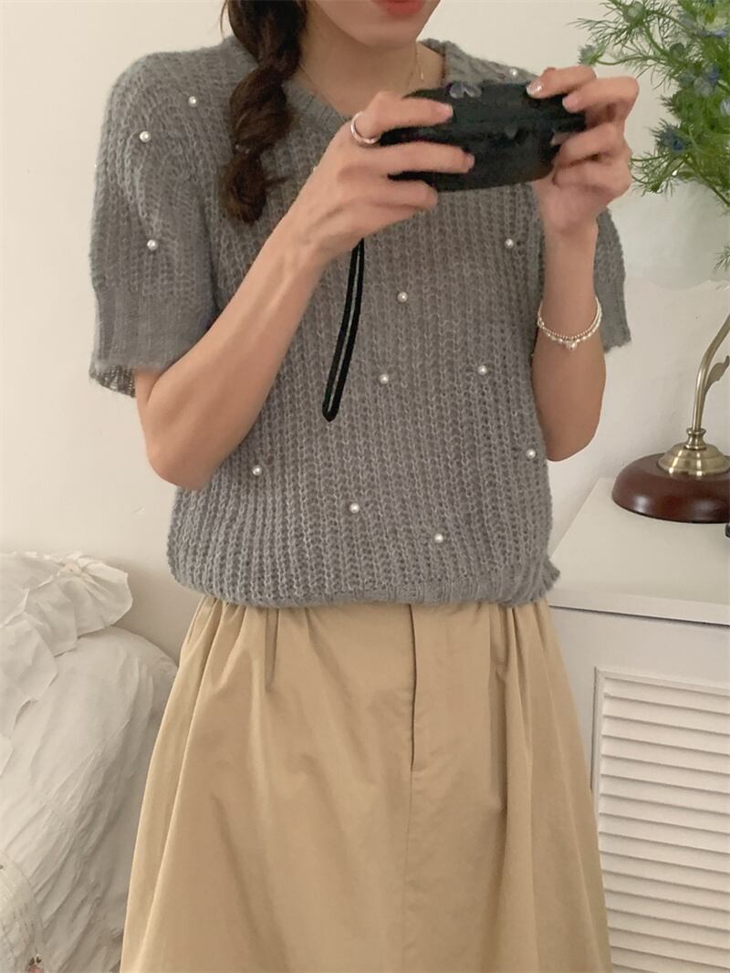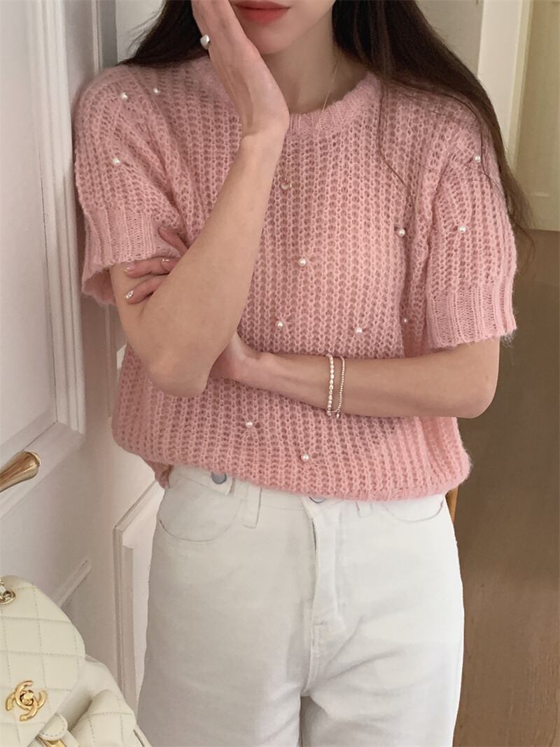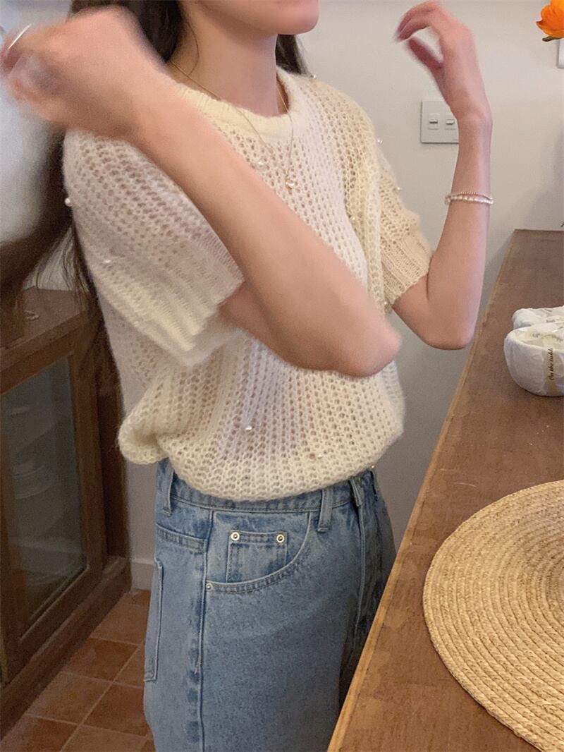 2023春INS★カジュアル 気質 透かし彫り 長袖 ニット プルオーバー