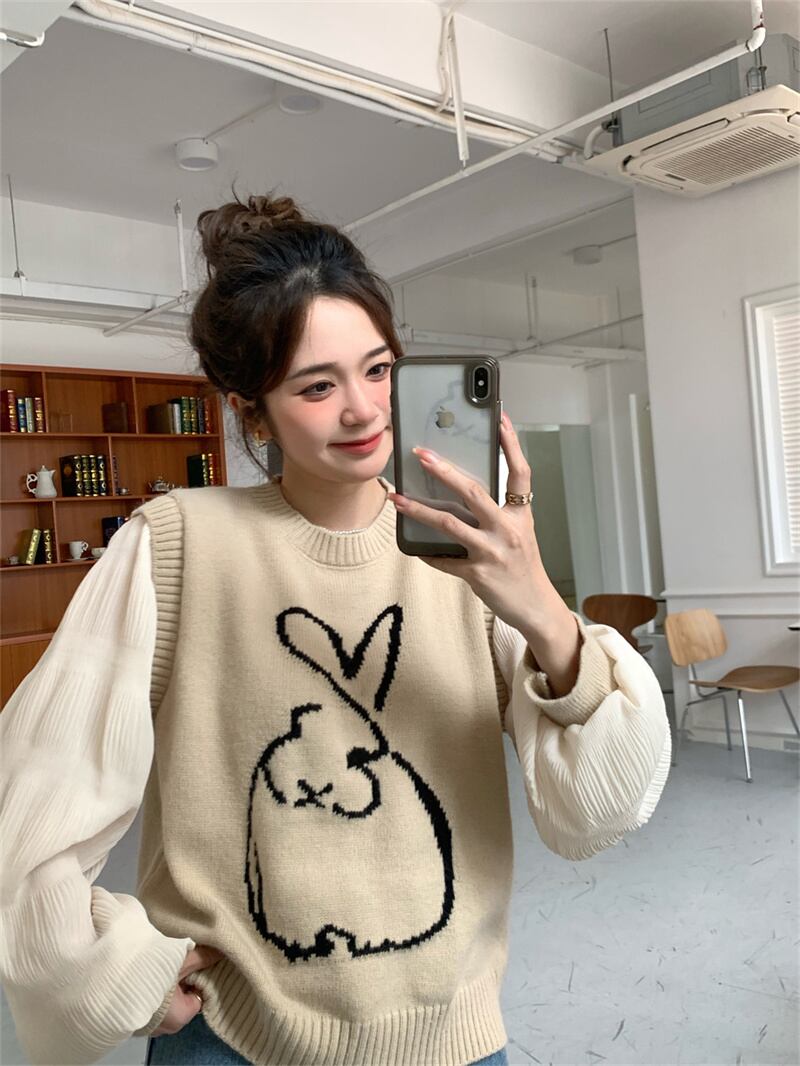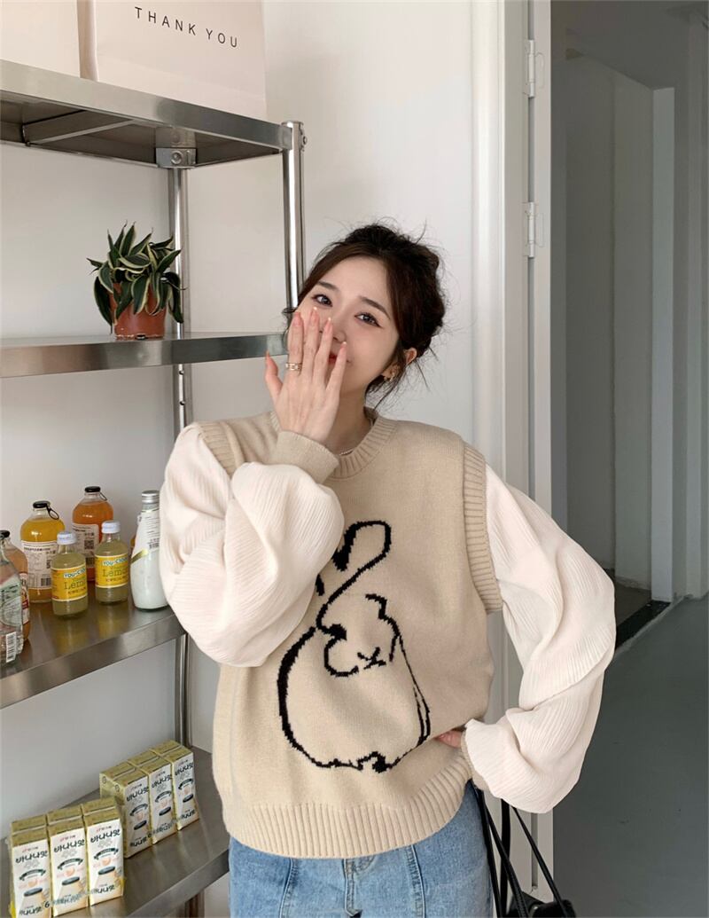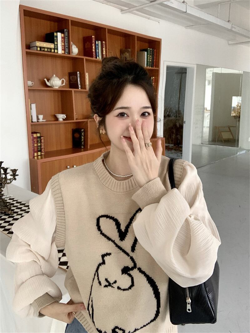 2023春INS★カジュアル 気質 偽2枚 長袖 ニット シャツ/ブラウス