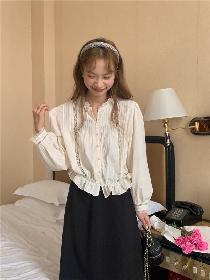 2023春INS★カジュアル 気質 スウィート フリル 長袖 シャツ/ブラウス