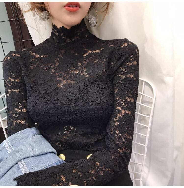 トップス レディース 長袖トップス レース インナー ハイネック おしゃれ