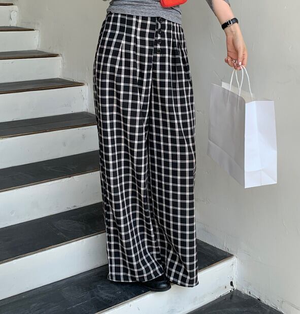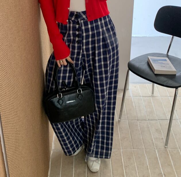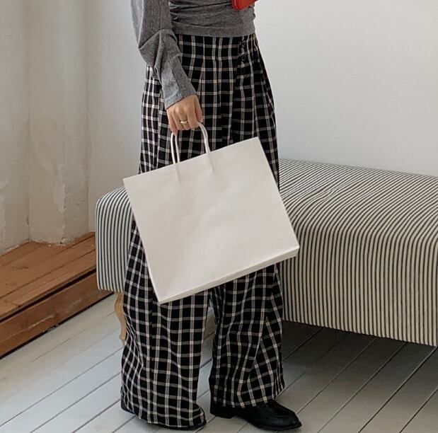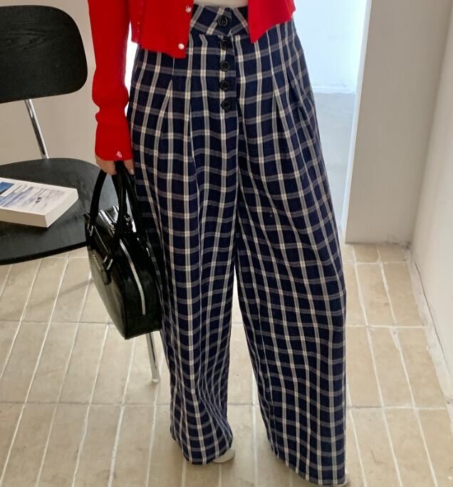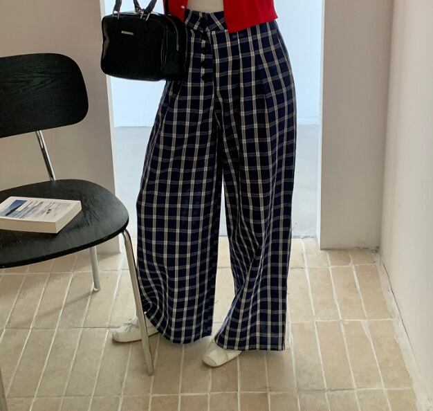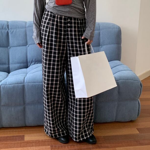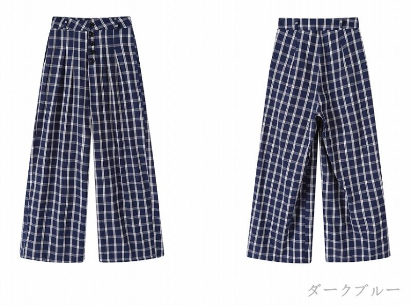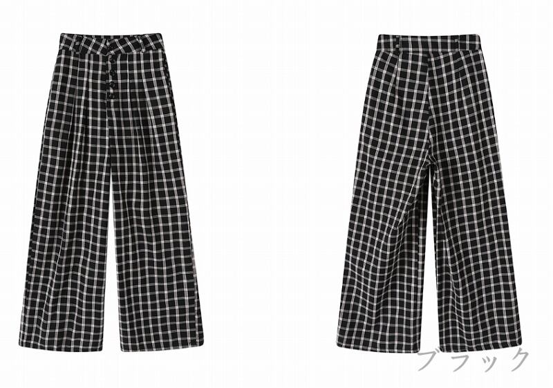 全2色 パンツ 切り替え バイカラー 体型カバー 着痩せ チェック柄 シンプル カジュアル