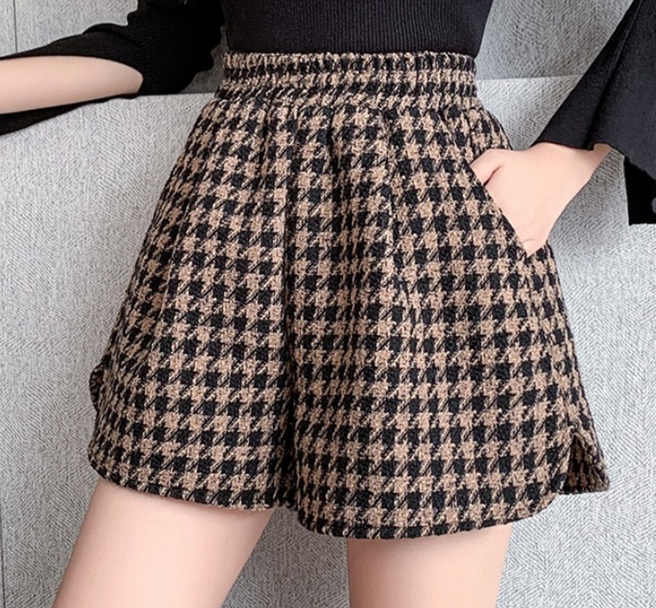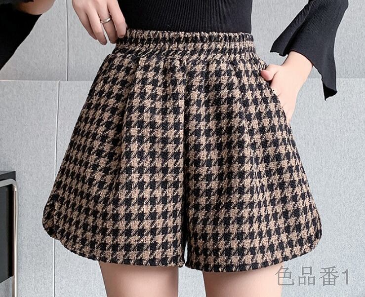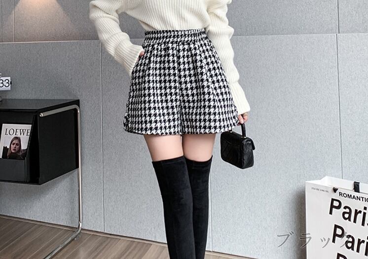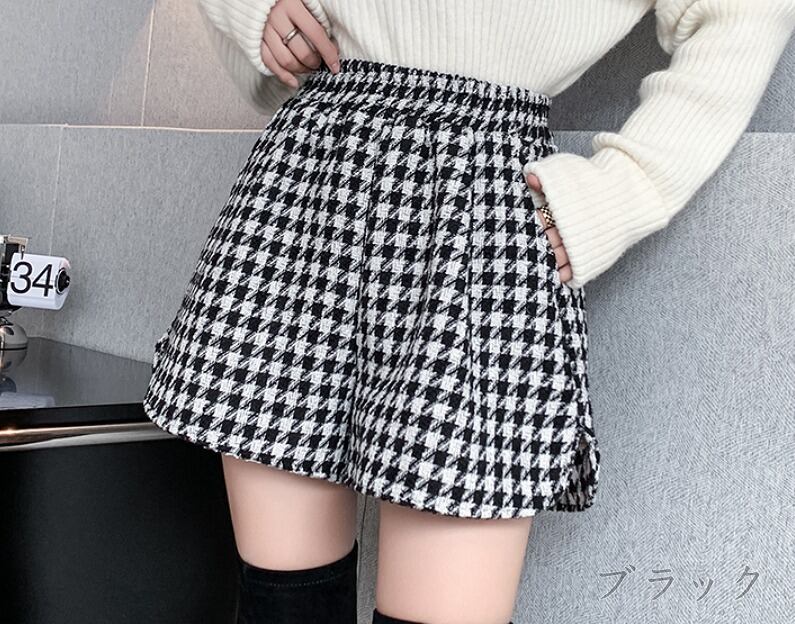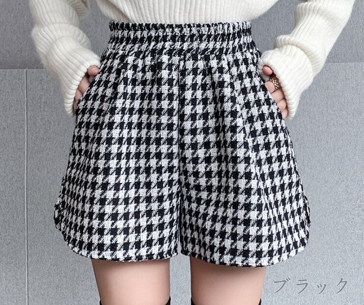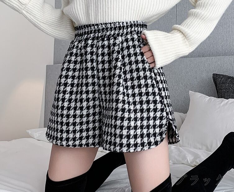 全2色 ショートパンツ ショーパン 切り替え バイカラー 体型カバー 着痩せ 千鳥柄 シンプル