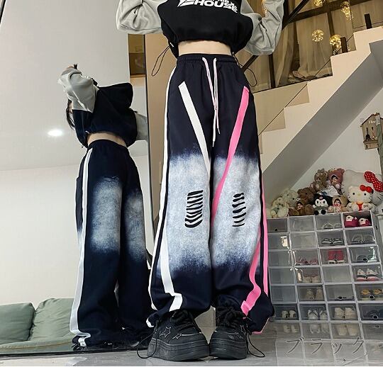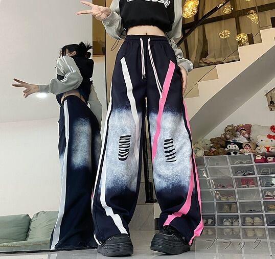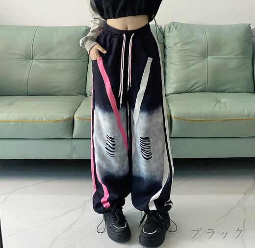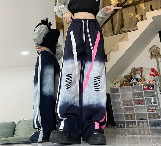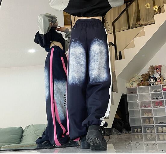 ワイド バギーパンツ 切り替え バイカラー 体型カバー 着痩せ シンプル カジュアル