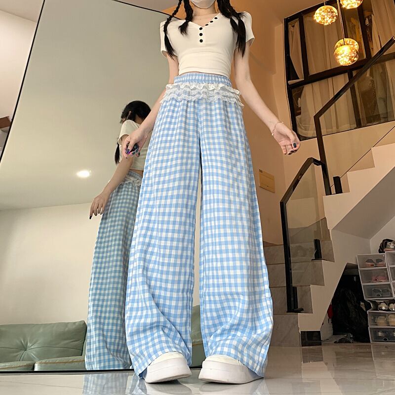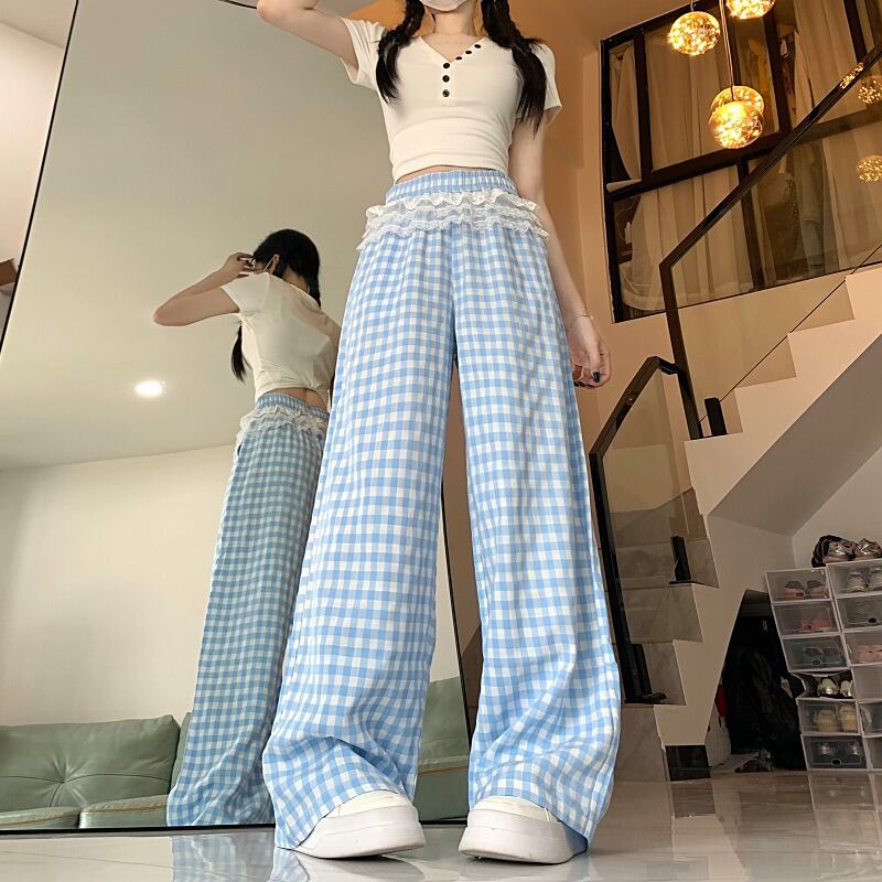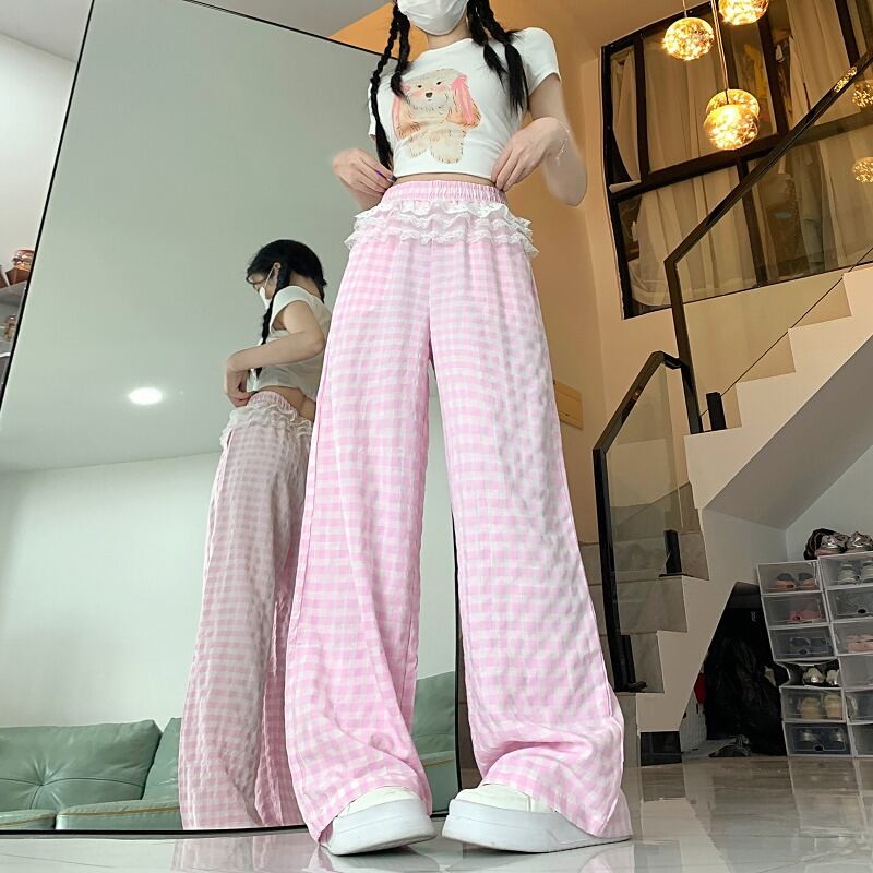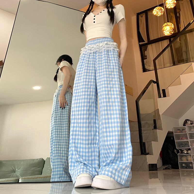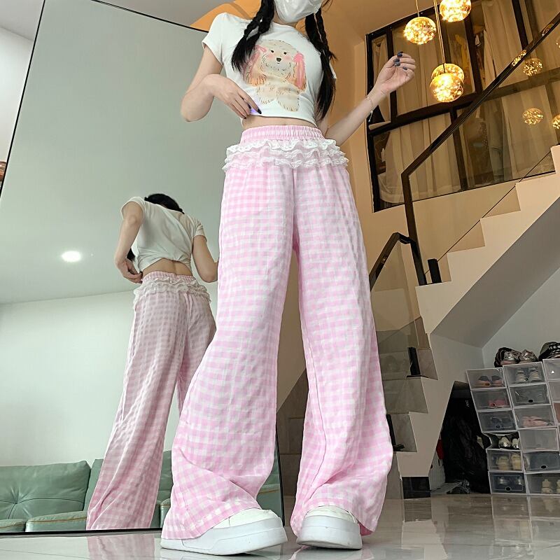 全2色 ワイド バギーパンツ 切り替え バイカラー 体型カバー 着痩せ チェック柄 sweet系