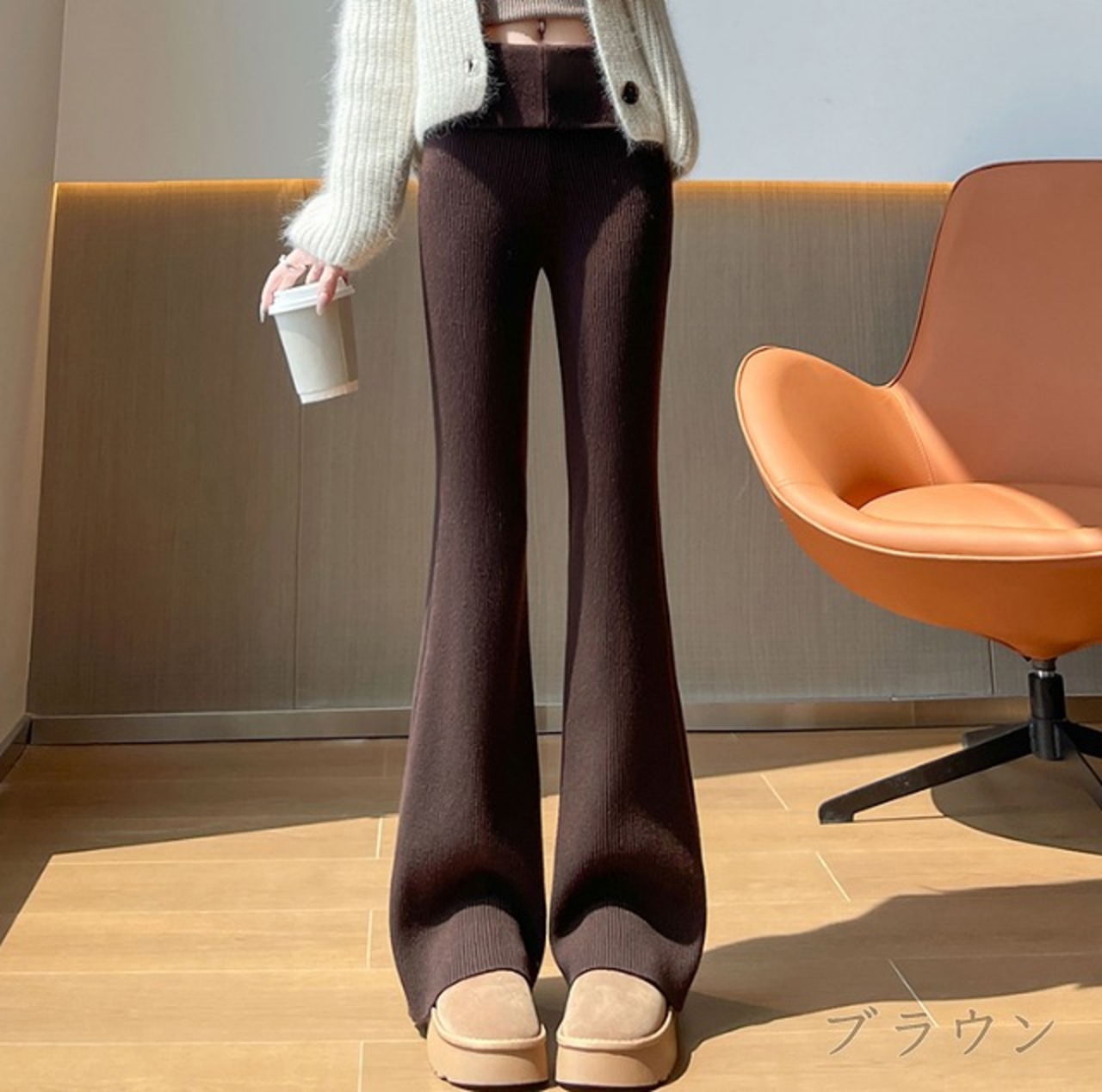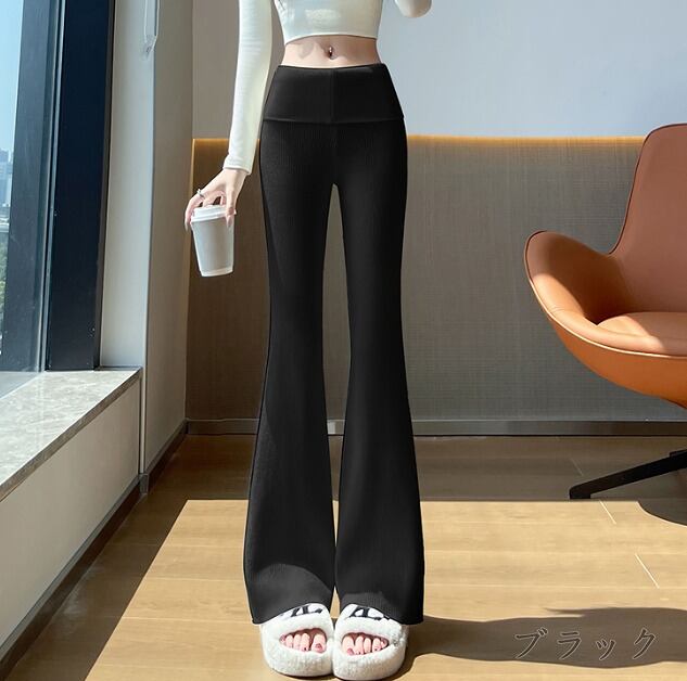全4色 パンツ ハイウエスト 切り替え スリム 着痩せ シンプル