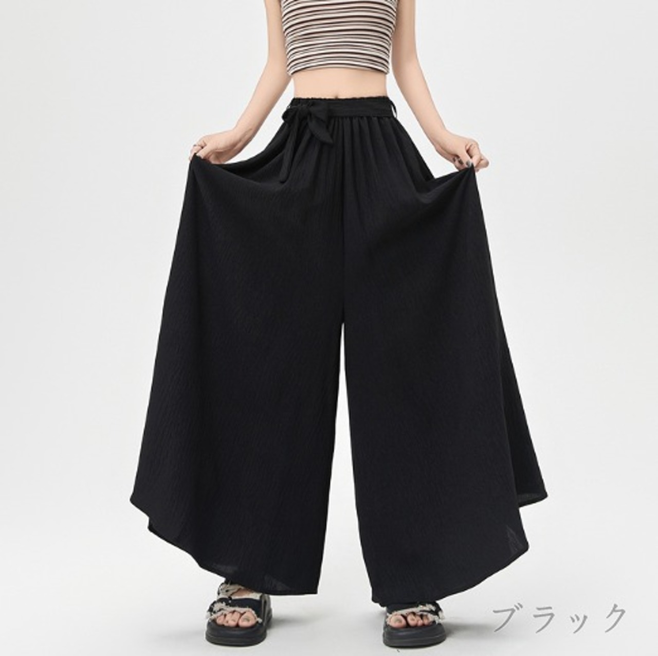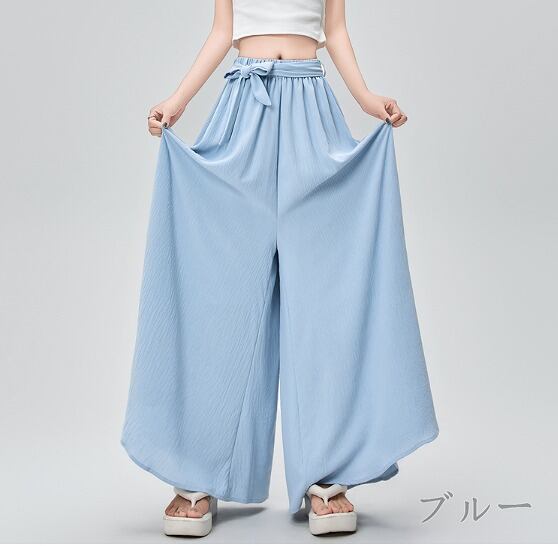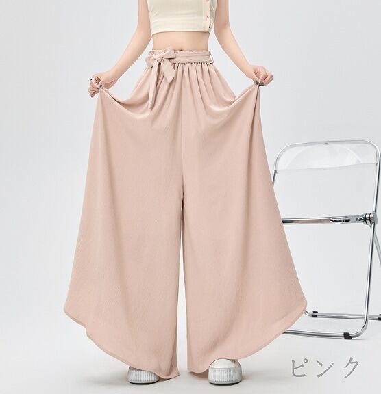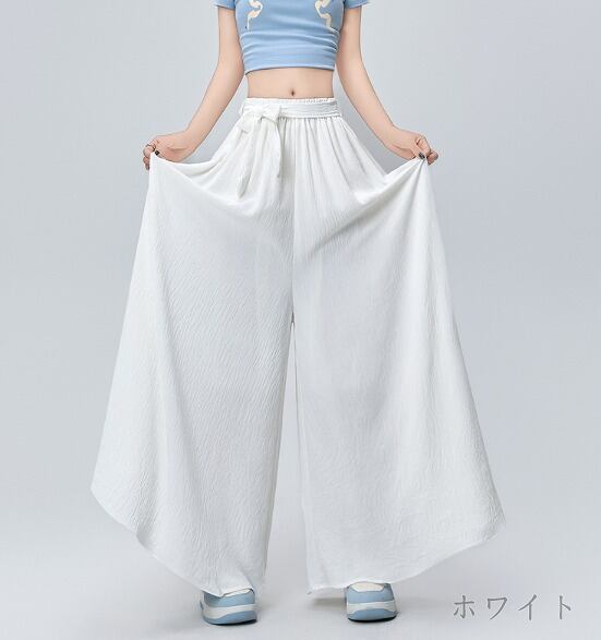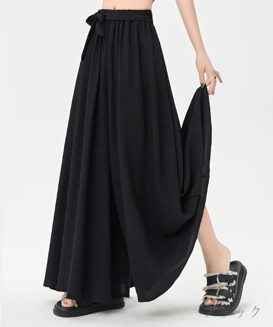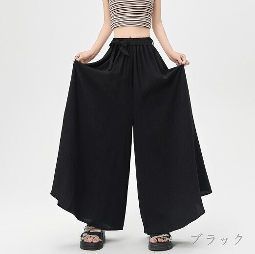 全4色 ワイド バギーパンツ フリル 切り替え 体型カバー 着痩せ カジュアル