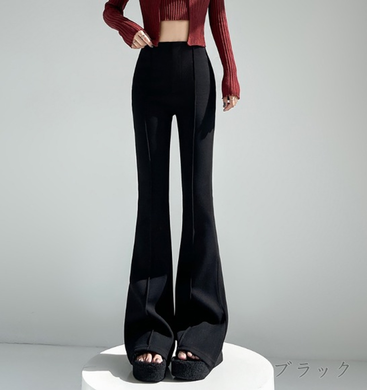全2色 パンツ 切り替え スリム 着痩せ ハイウエスト 【大きいサイズあり】