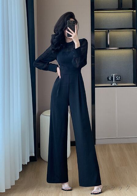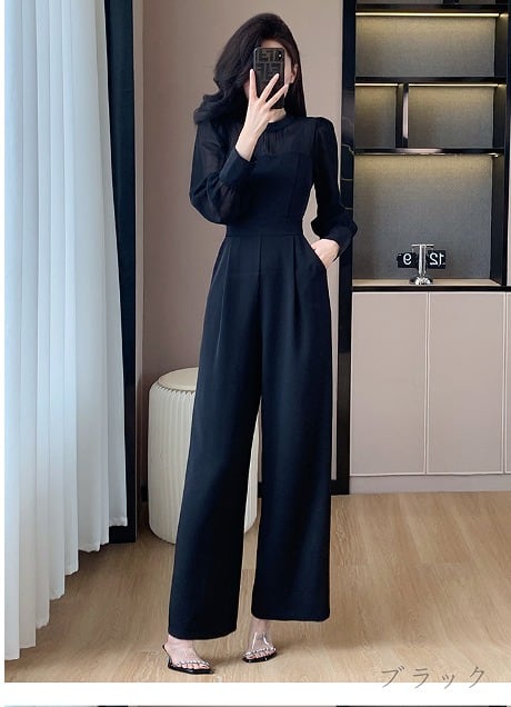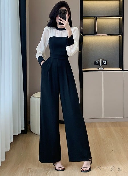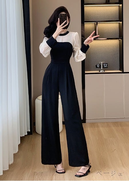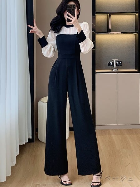全2色 オールインワン オーバーオール 切り替え スリム 着痩せ 【大きいサイズあり】