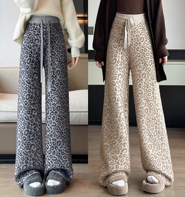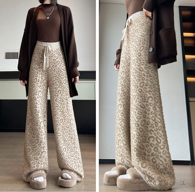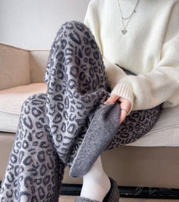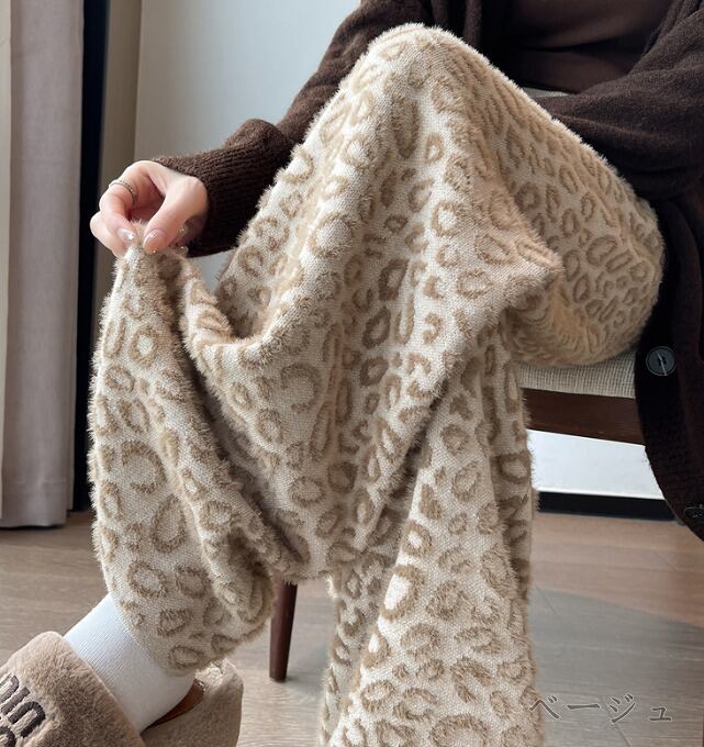 全2色 ワイド バギーパンツ 切り替え バイカラー 体型カバー 着痩せ レオパード柄 カジュアル