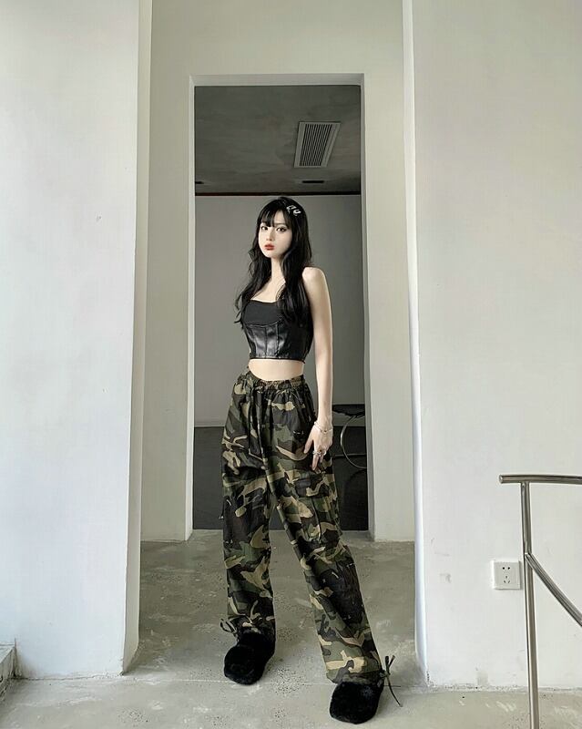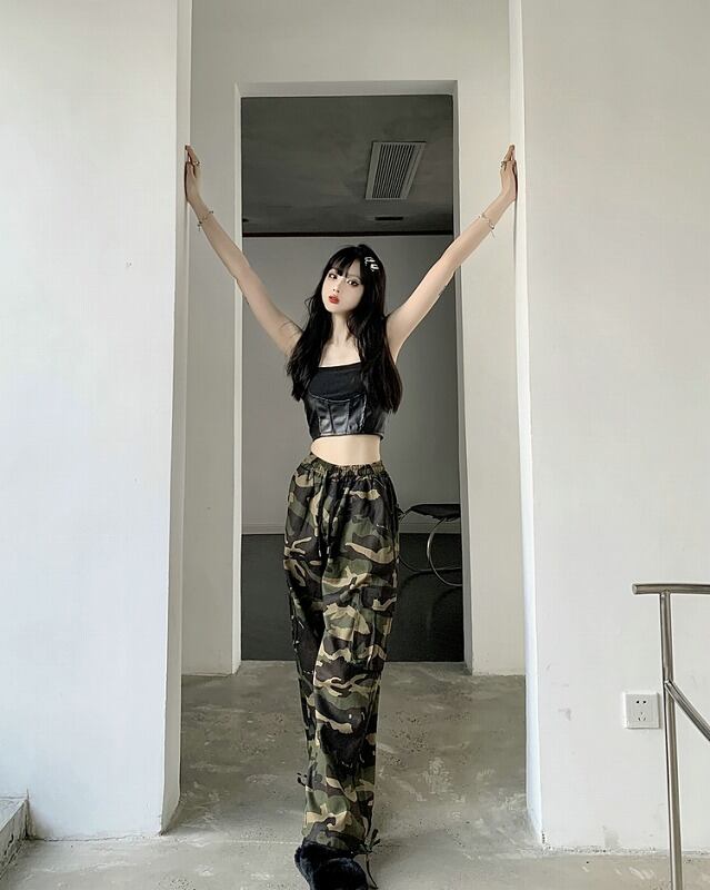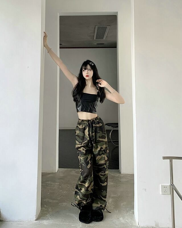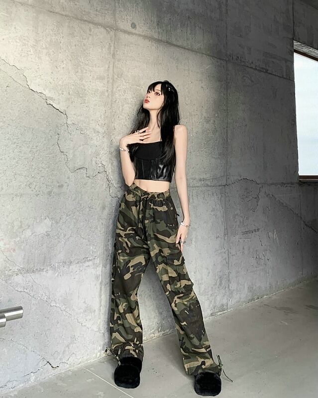パンツ 切り替え バイカラー 体型カバー 着痩せ 迷彩 ミリタリー カジュアル