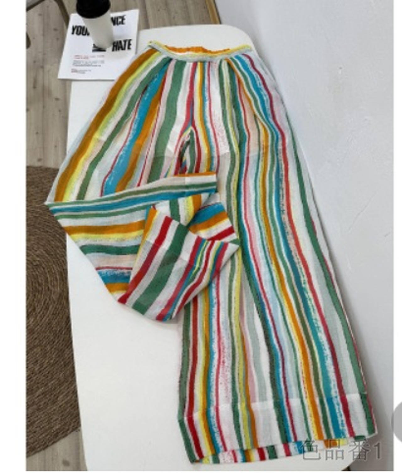パンツ 切り替え バイカラー 体型カバー 着痩せ ストライプ柄 【大きいサイズあり】