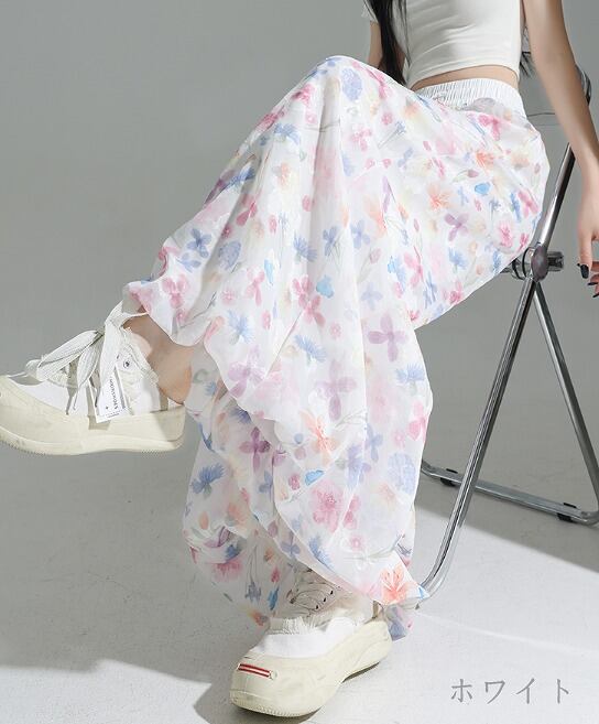 ワイド バギーパンツ ハイウエスト 切り替え バイカラー 体型カバー 着痩せ 【大きいサイズあり】