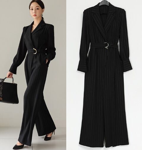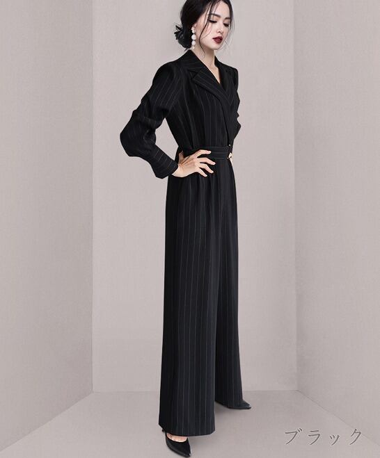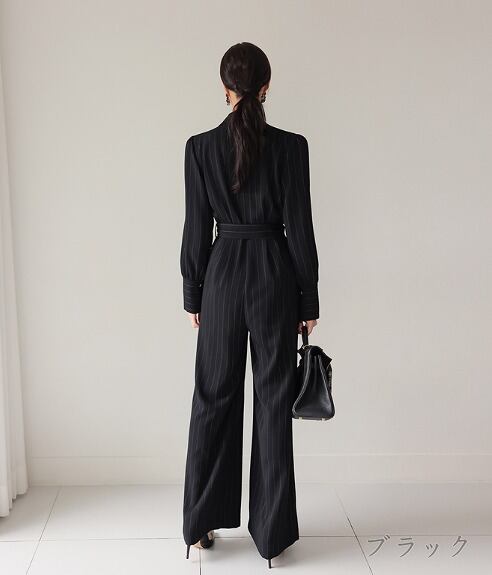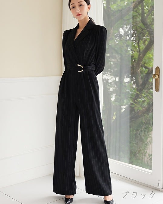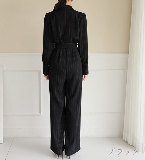 オールインワン オーバーオール 切り替え バイカラー 体型カバー 着痩せ ストライプ柄 シンプル