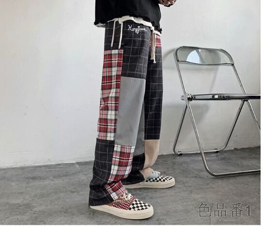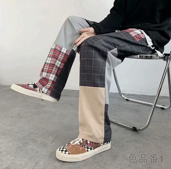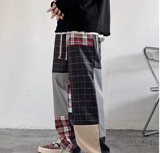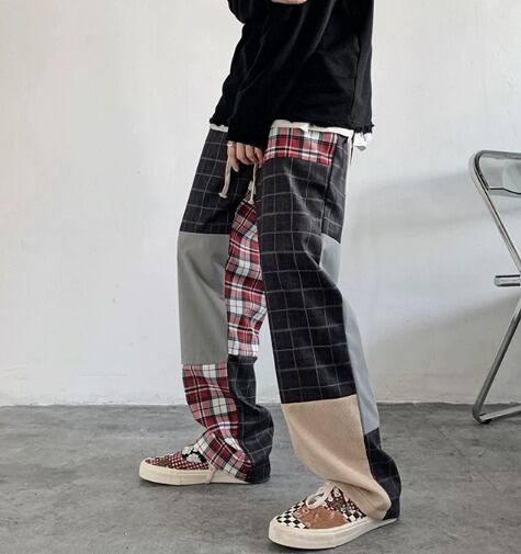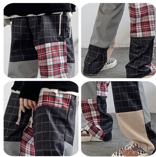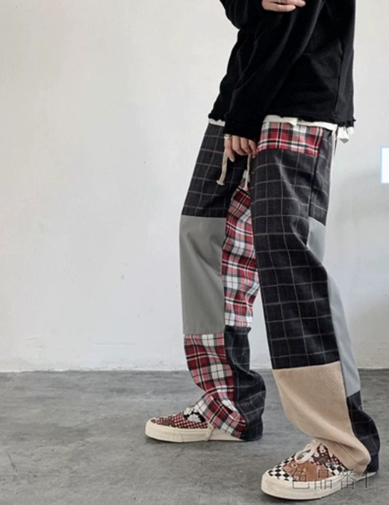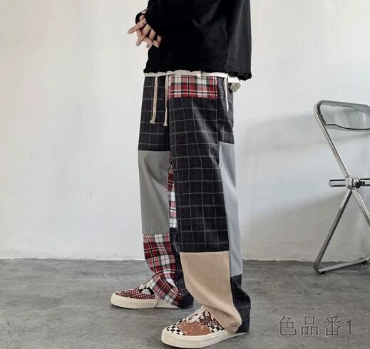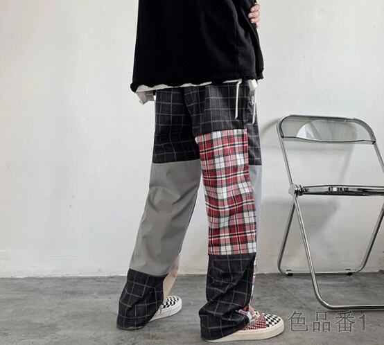 パンツ 切り替え バイカラー 体型カバー 着痩せ チェック柄 【大きいサイズあり】 原宿系