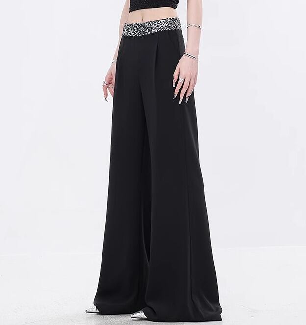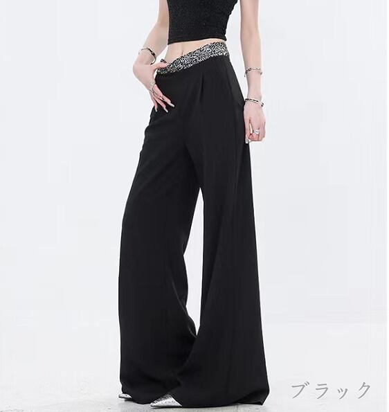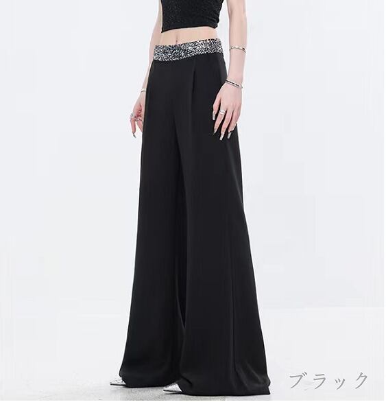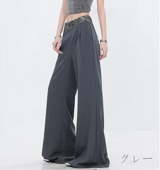 全2色 パンツ ハイウエスト 切り替え 体型カバー 着痩せ シンプル