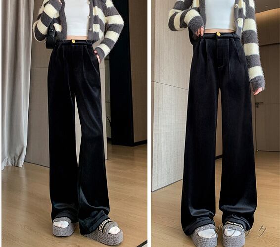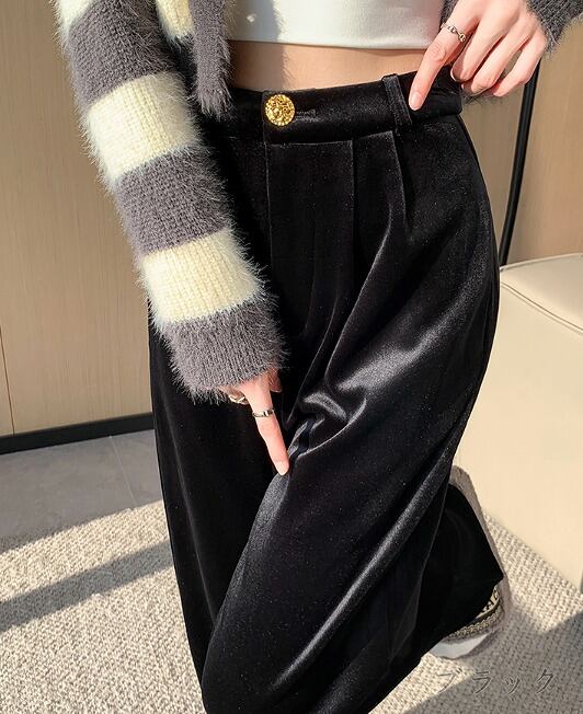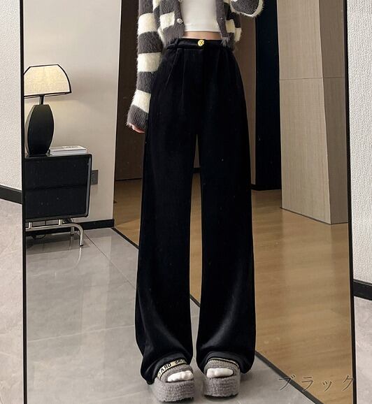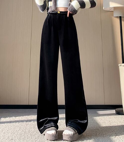 ワイド バギーパンツ 裏起毛 切り替え 体型カバー 着痩せ 【大きいサイズあり】