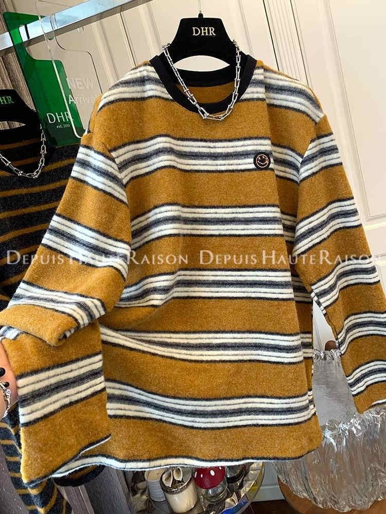 今季マストバイ 長袖 レトロ ニット 超優しい 個性的 ストライプ柄 インナー
