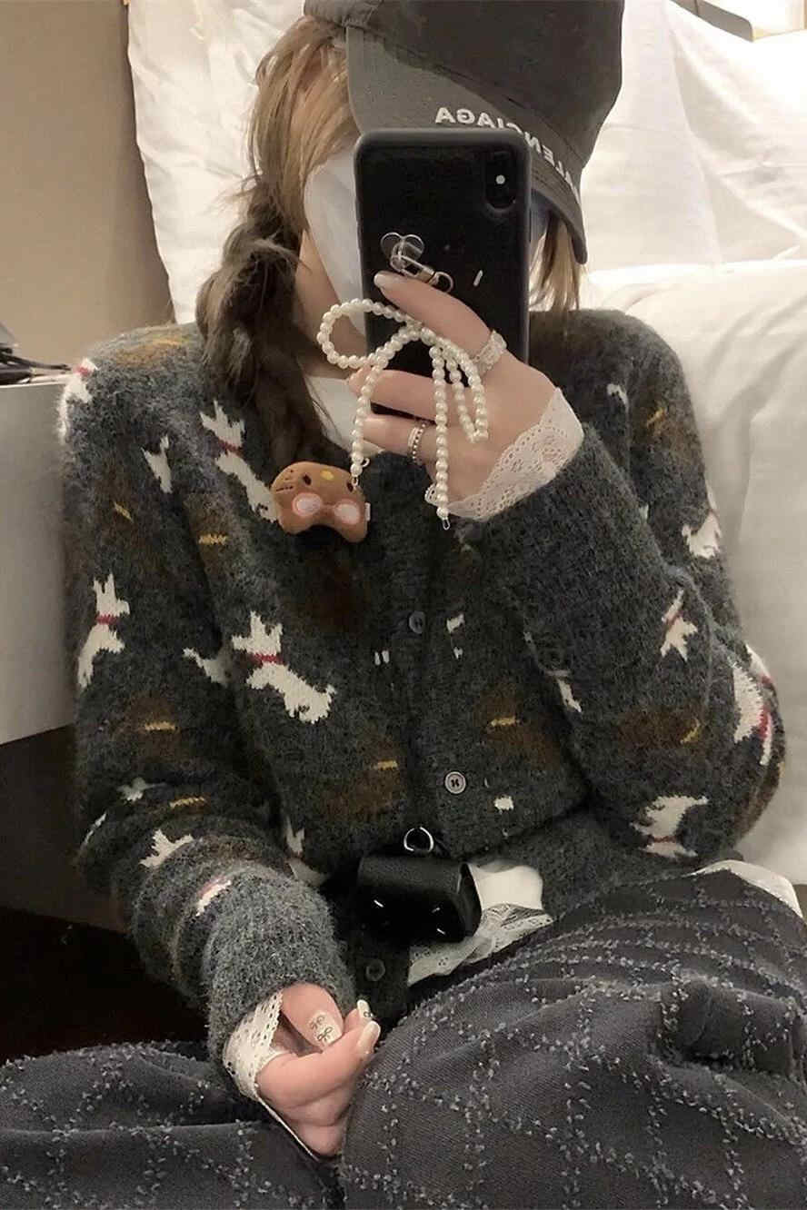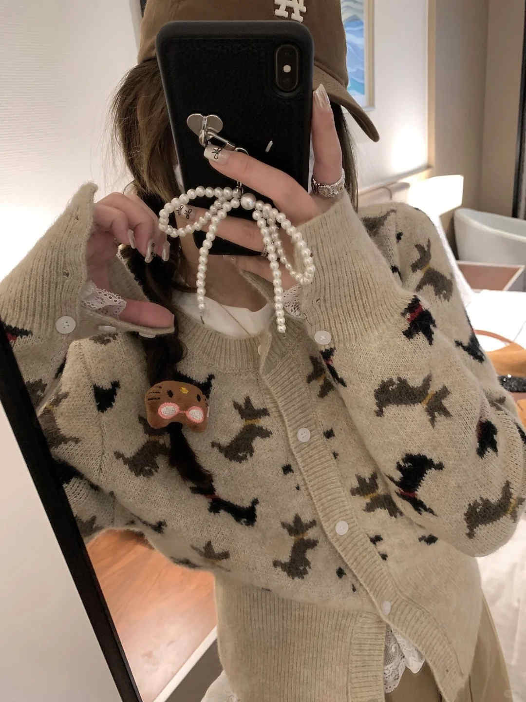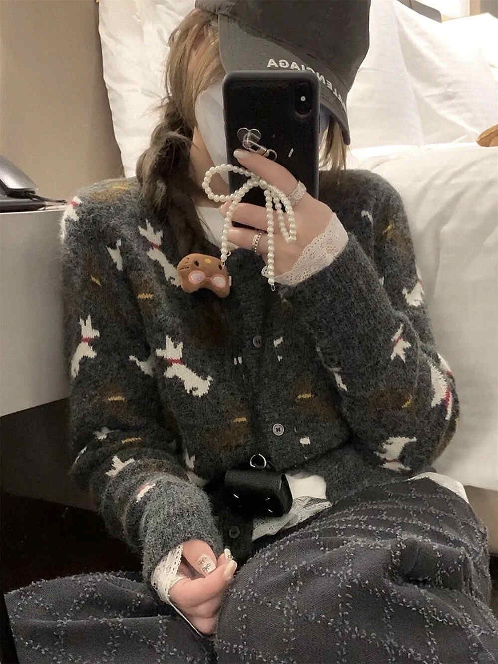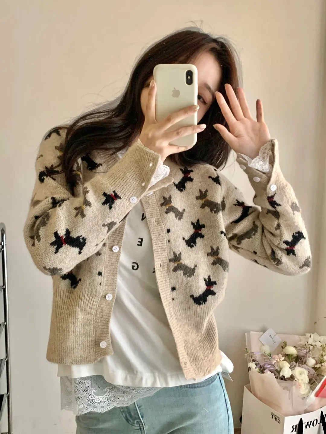 今季マストバイ 韓国風 可愛い 長袖 防寒 厚手 レトロ ニット カーディガン コート