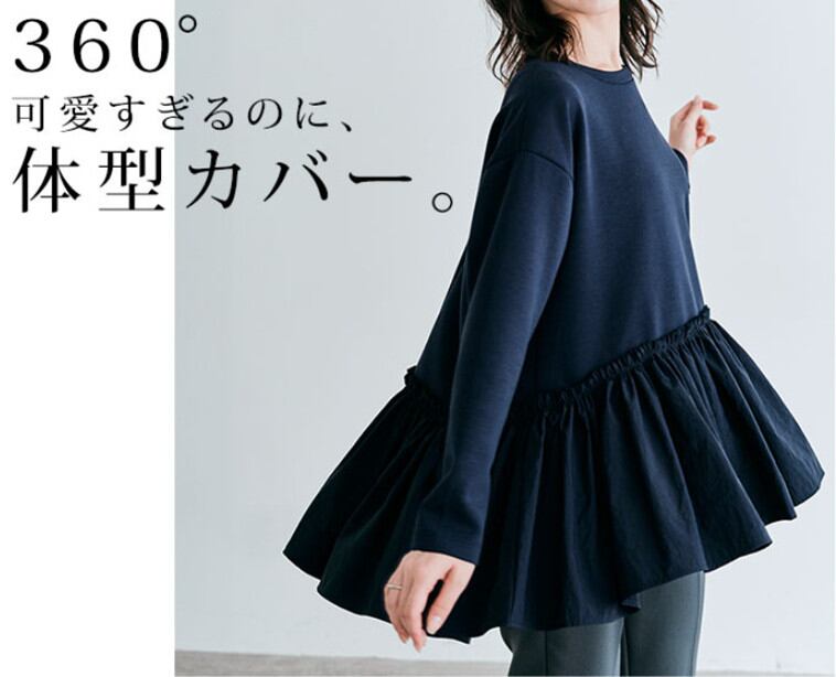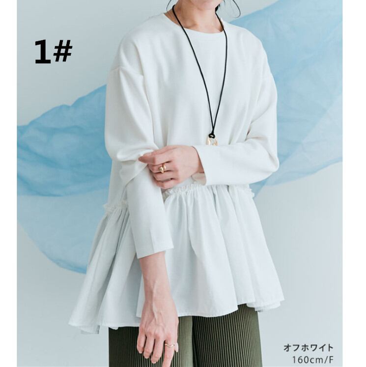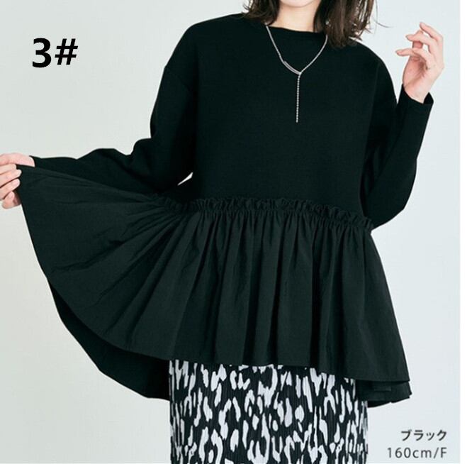 秋冬新作 トップス レディース プルオーバー 長袖 ラウンドネック 異素材 大きいサイズ