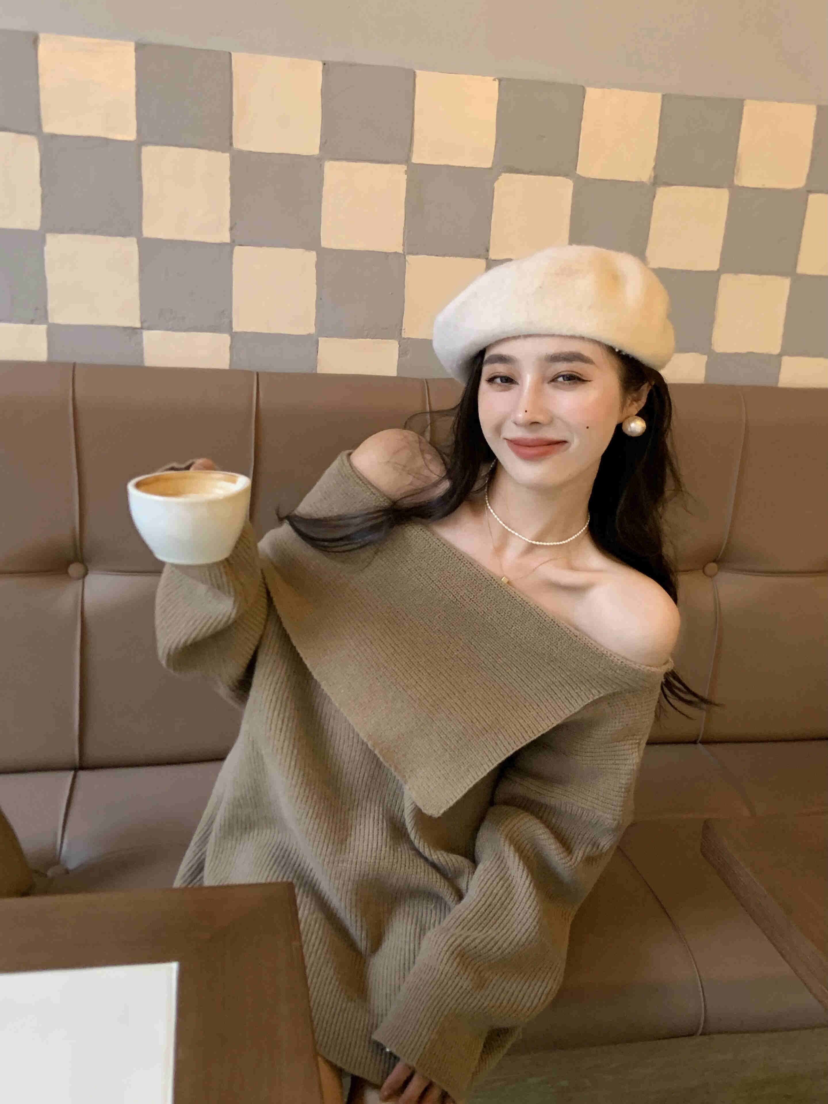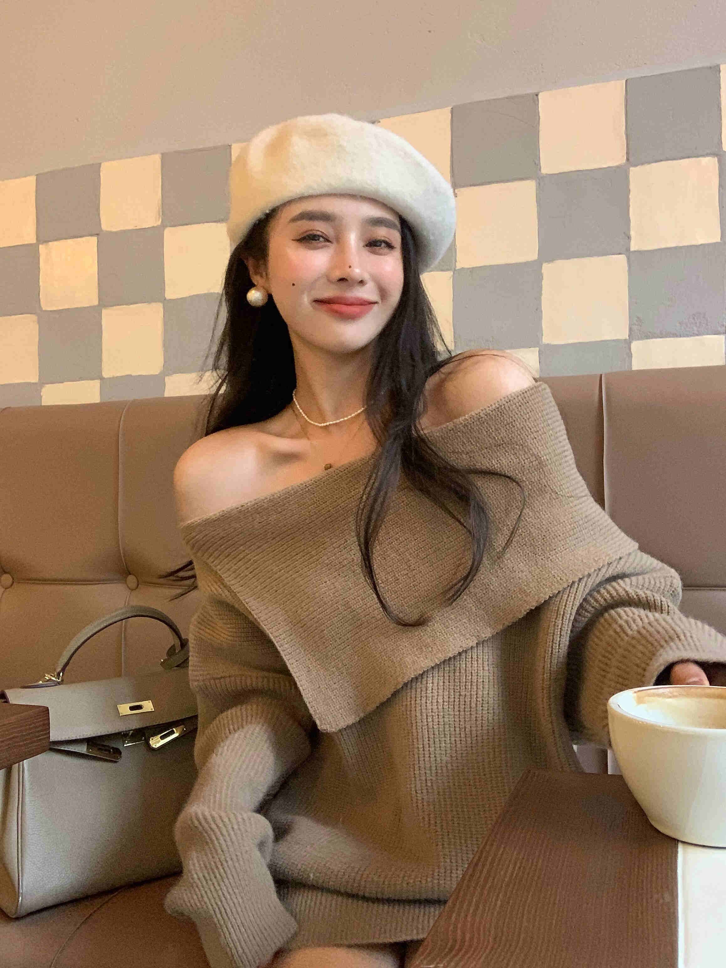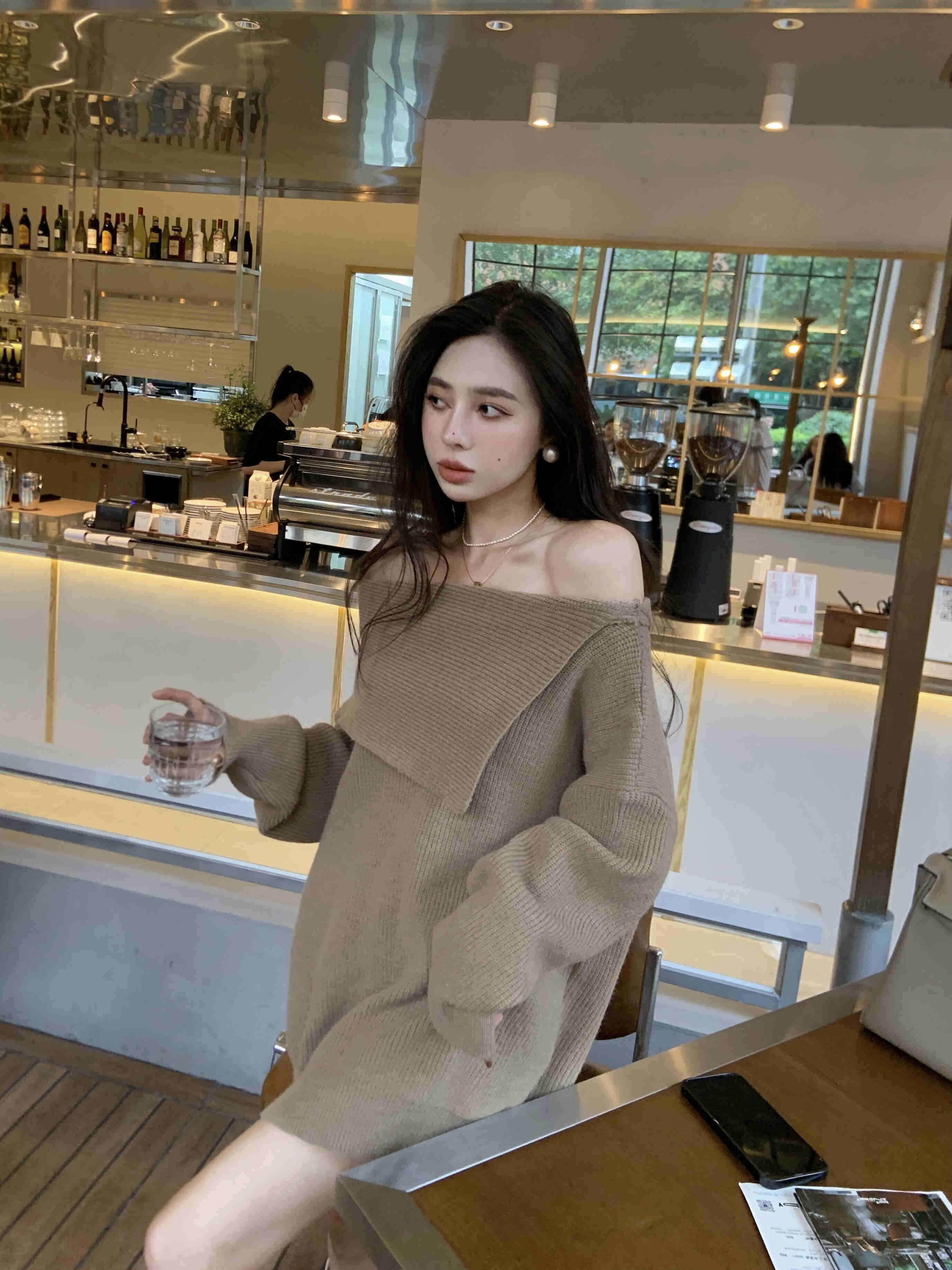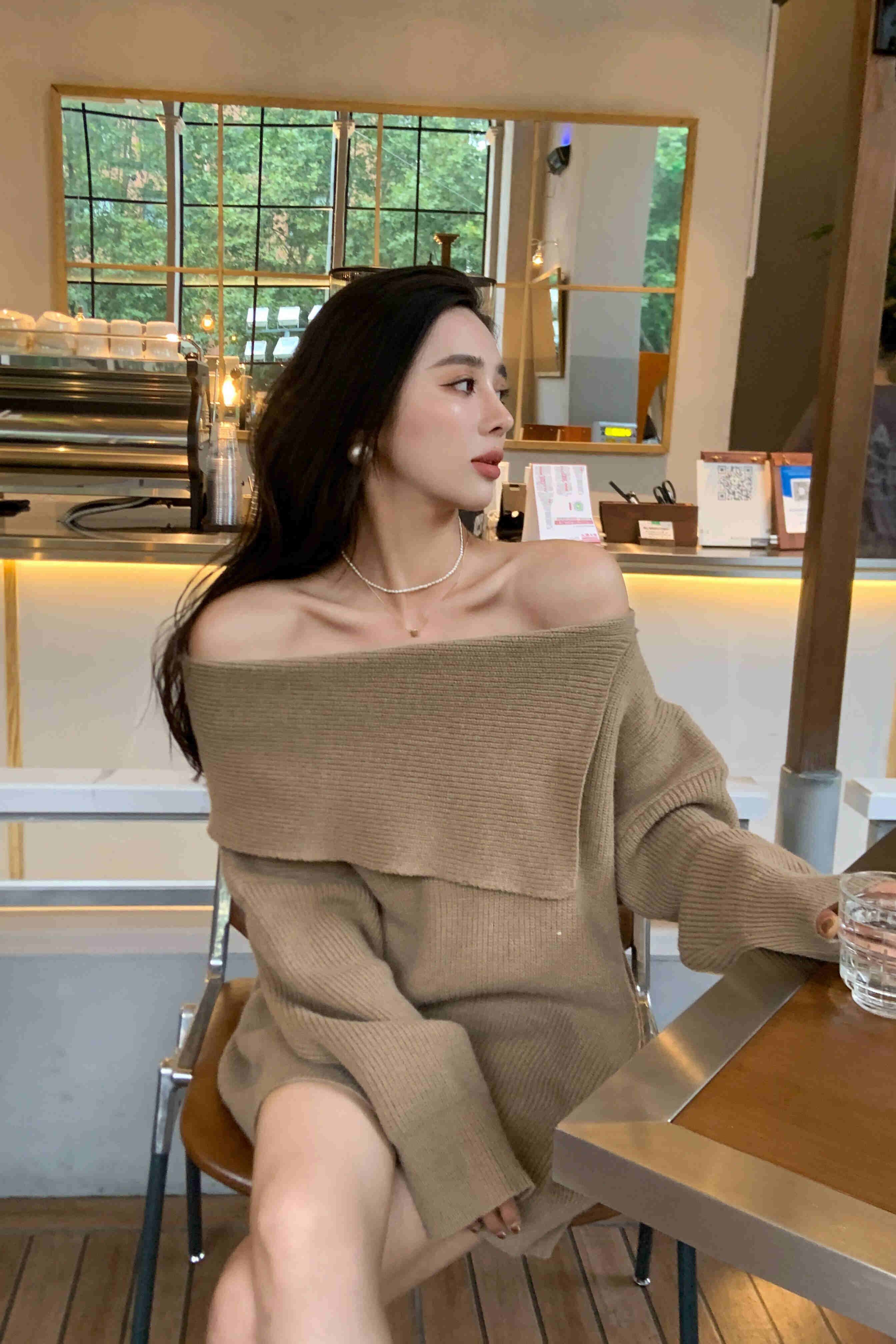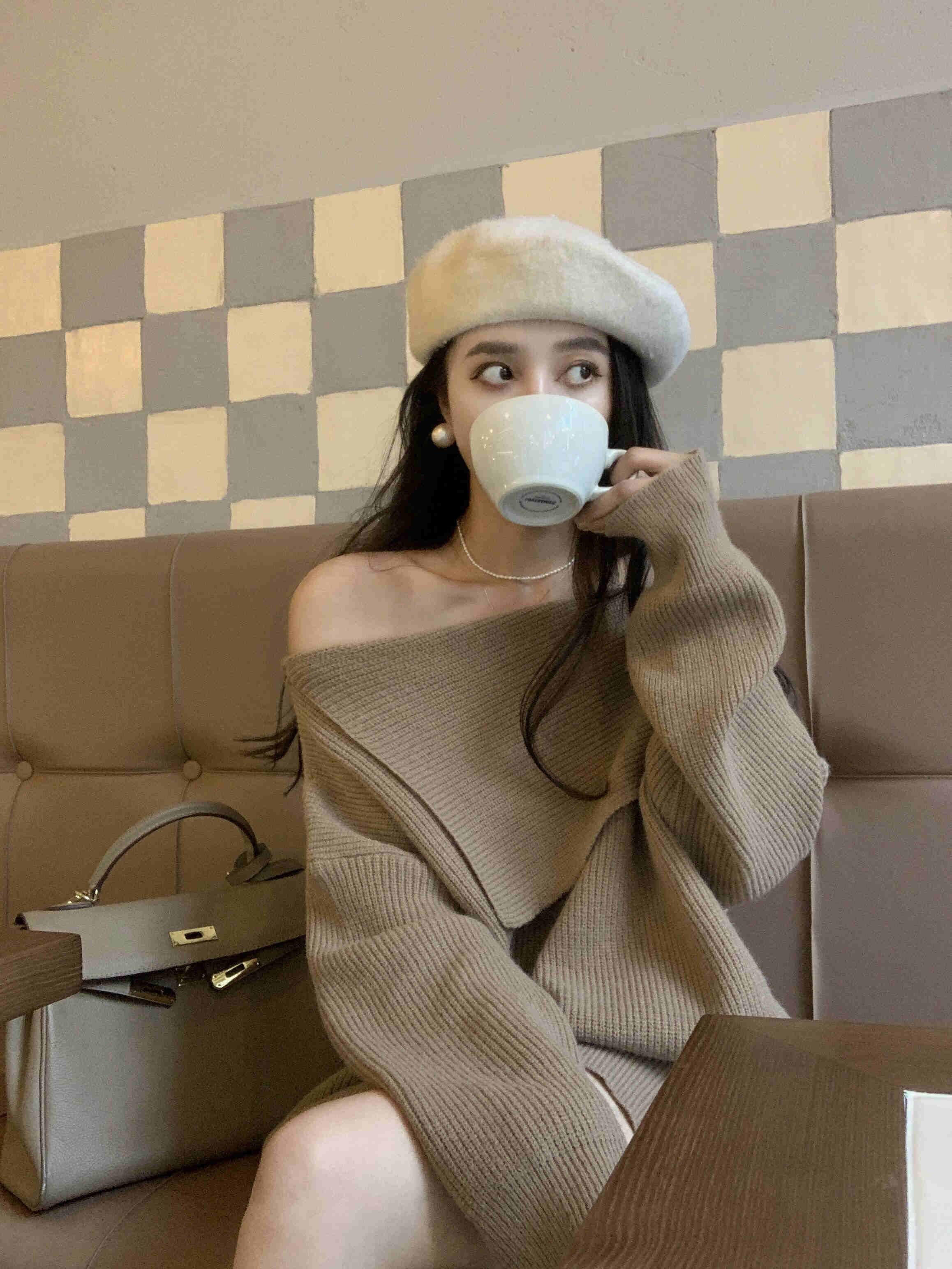 今季マストバイ 可愛い スウィート ニット 一 文字肩 防寒 厚手 トップス