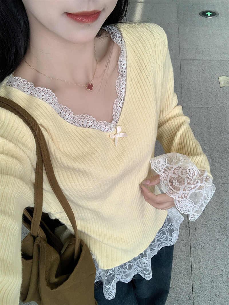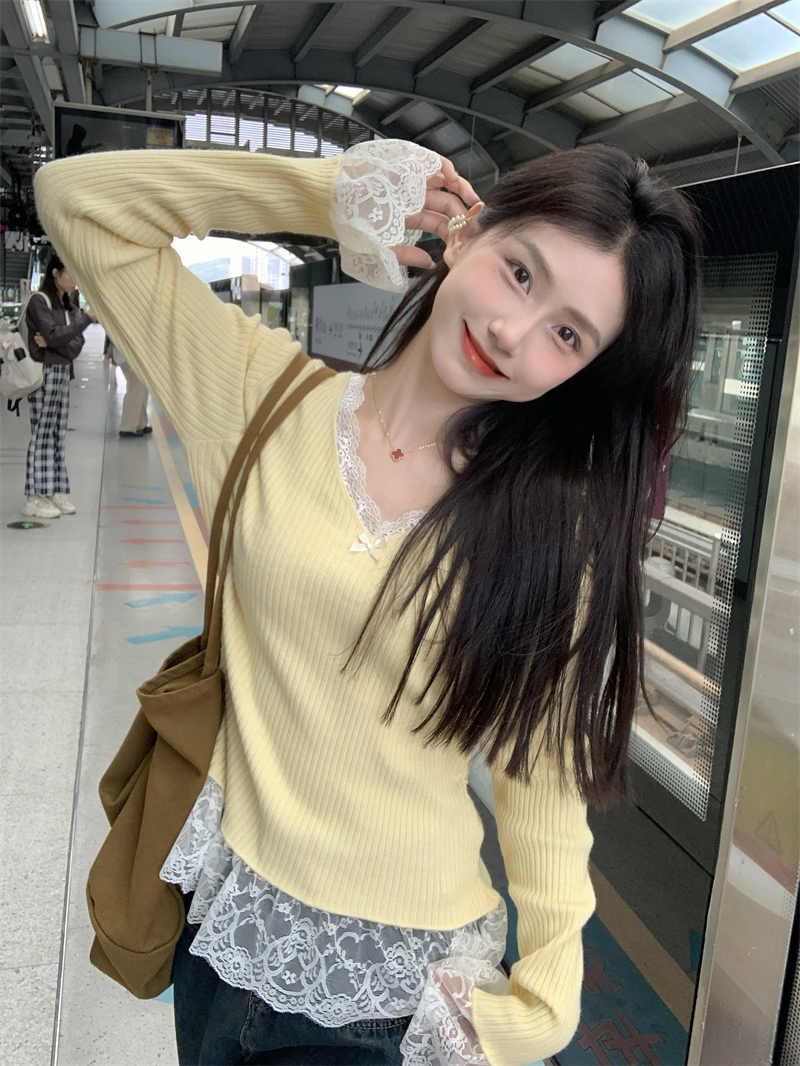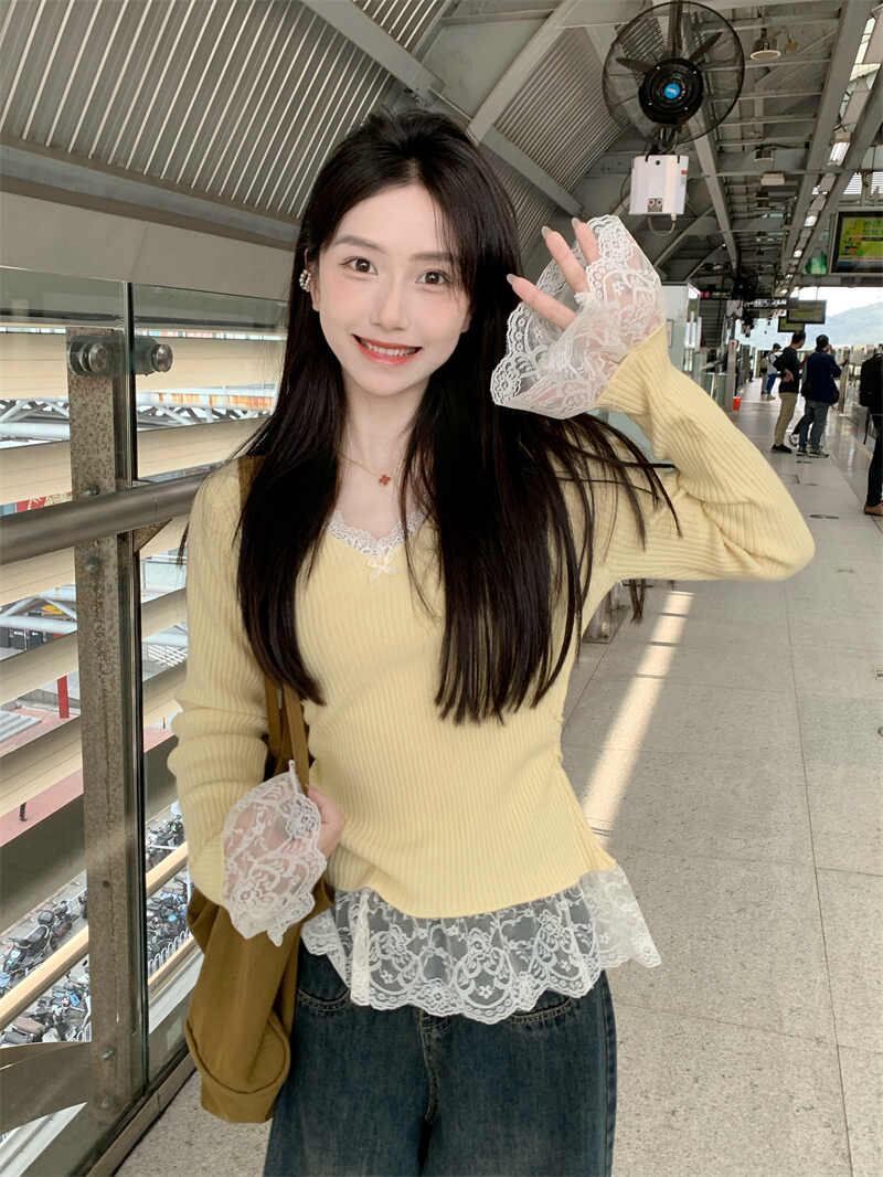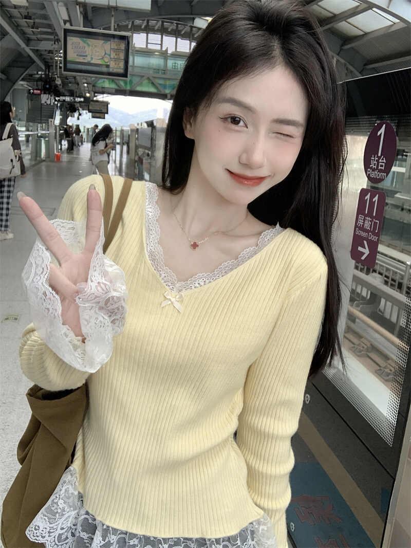 今季マストバイ おしゃれ カシュクール スリム レース スウィート 可愛い 長袖 トップス