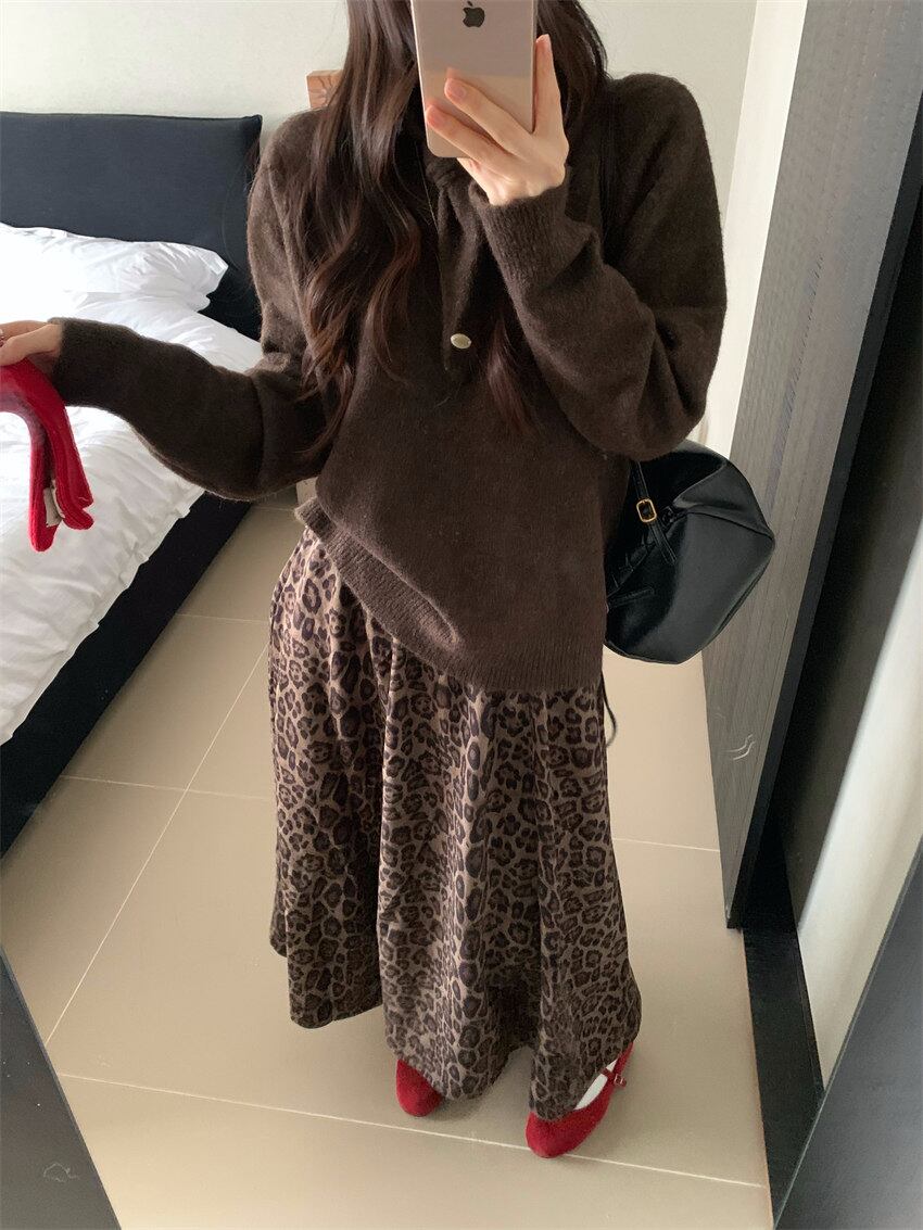 今季マストバイ カジュアル系 ニットセーター+スカート セット ふわふわ 可愛い