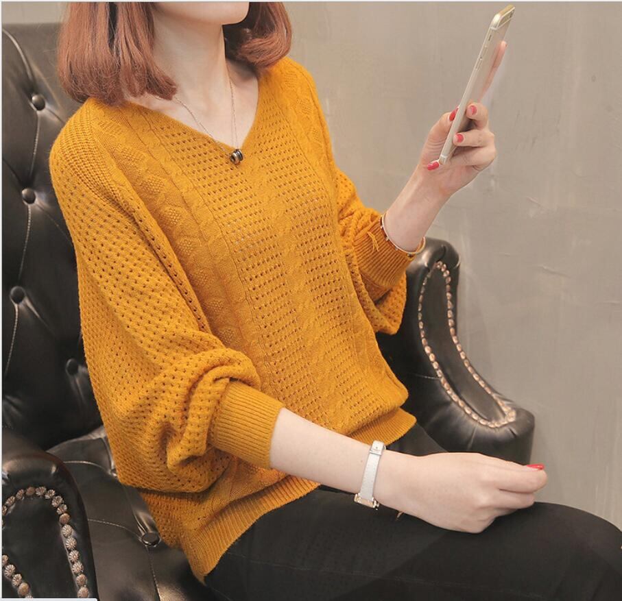 新しい秋と冬の韓国の女性のVネックセータートップ