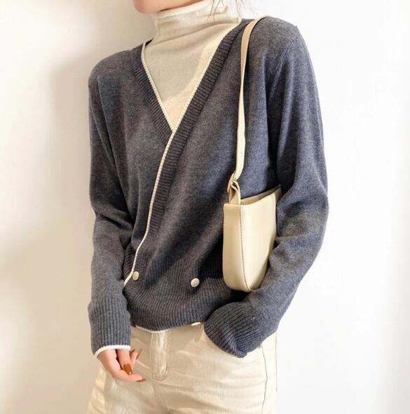 秋冬新作 ニット  偽の2点 レディース セーター トップス  大きいサイズ