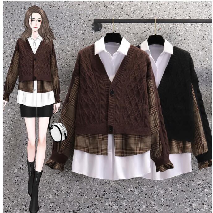 秋冬新作 ニットセット レディース セーター+シャツ ニット トップス 2点セット