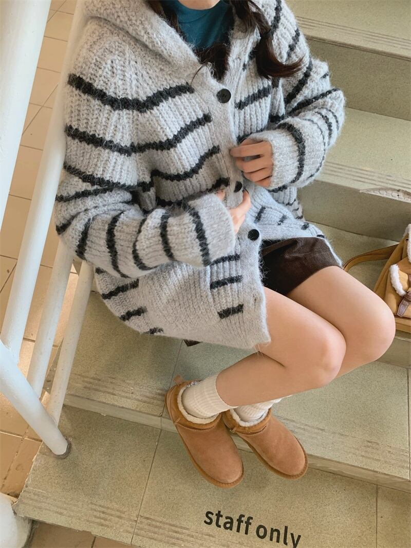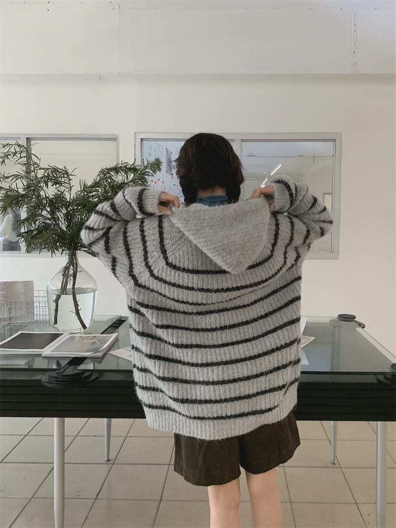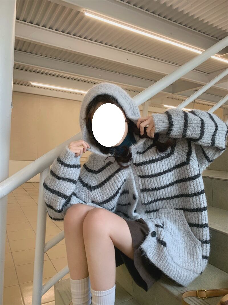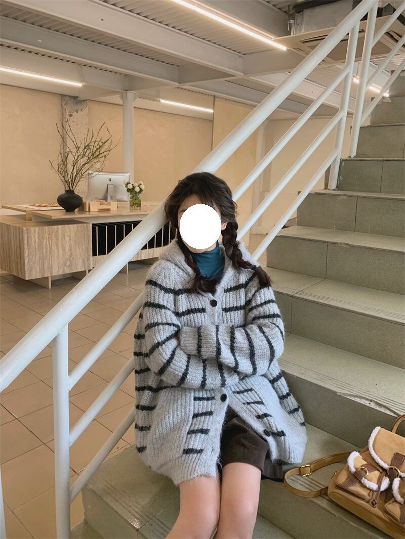 2024年春ins 新作 気質 レトロ セーター 帽子付き コート