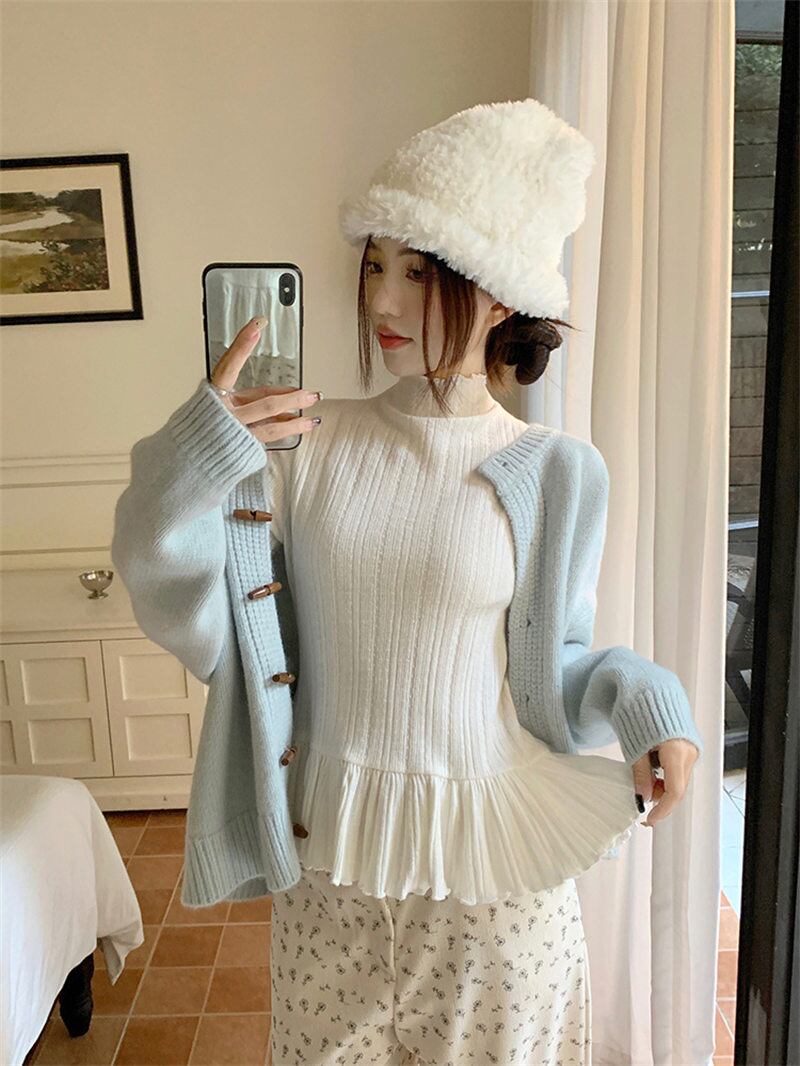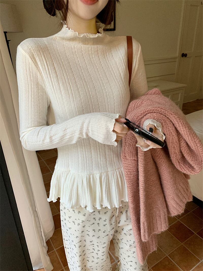 2024年春ins 新作 気質 レトロ セーター ニット フリル おしゃれ カジュアル