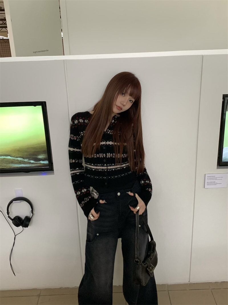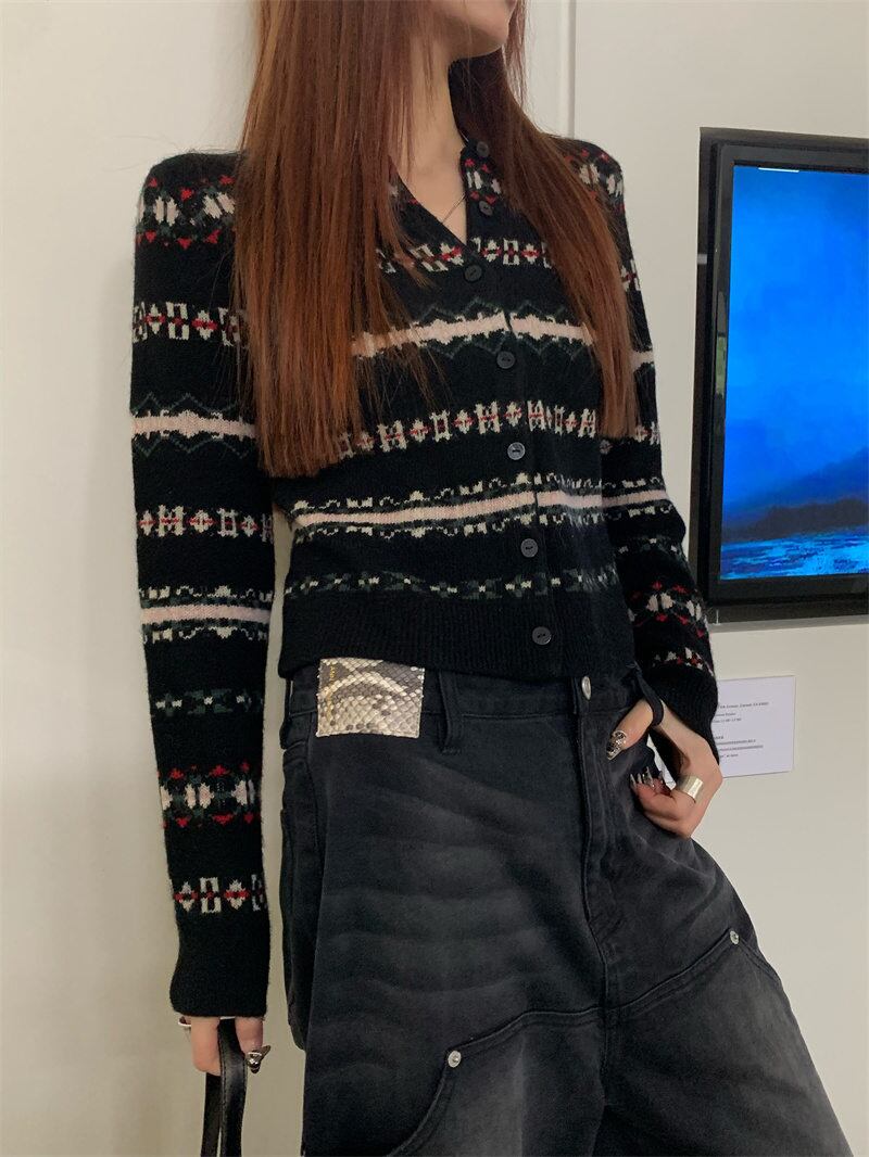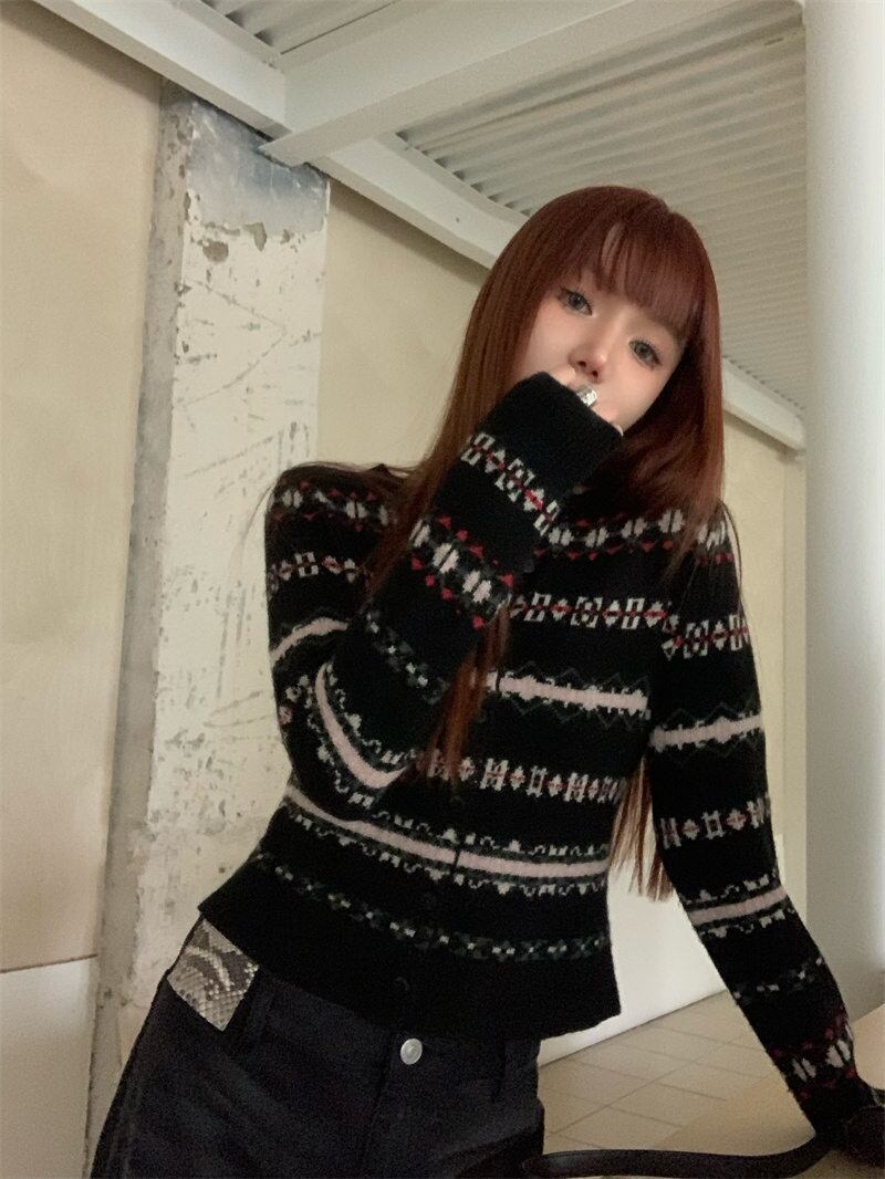 2024年春ins 新作 気質 レトロ カーディガン ニット ミニ丈 おしゃれ カジュアル