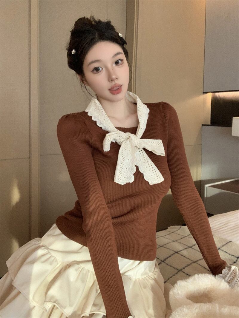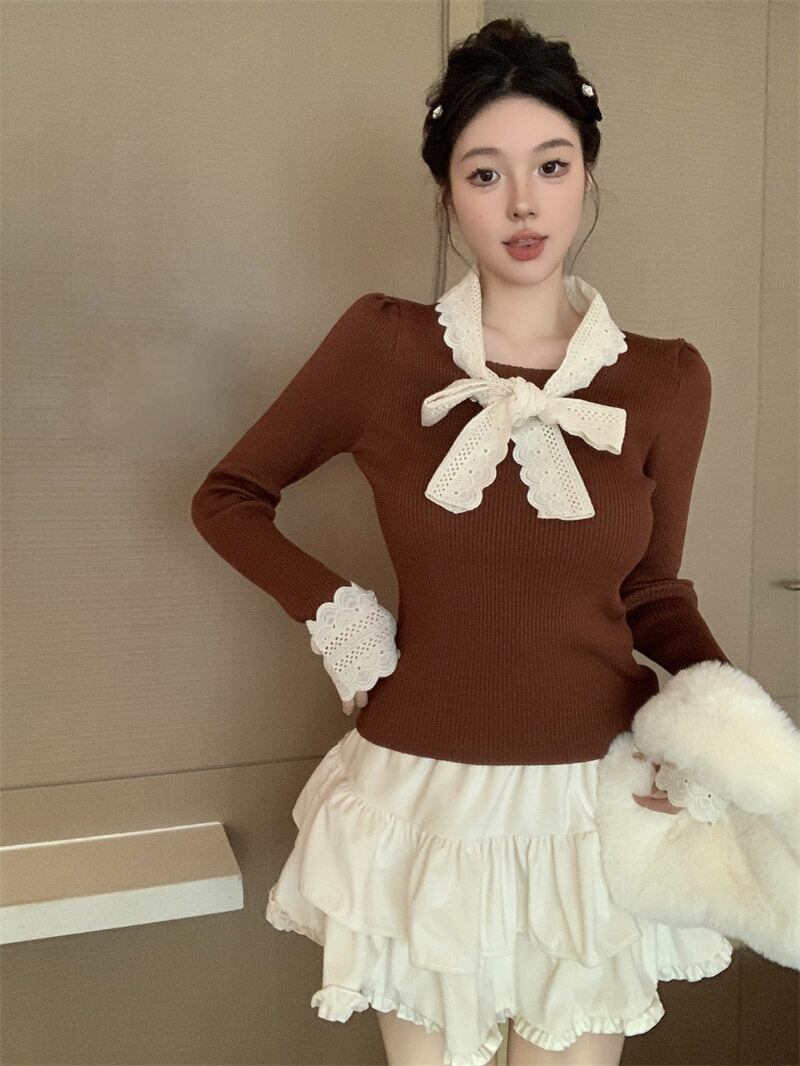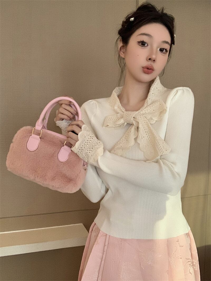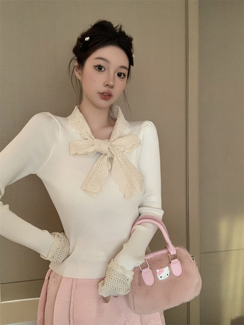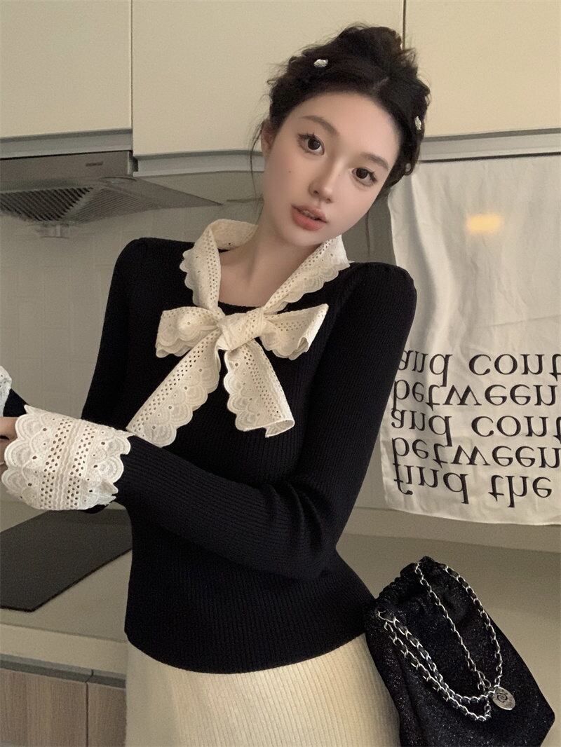 2024年新作 設計感 長袖 トップス おしゃれ リボン ニットセーター