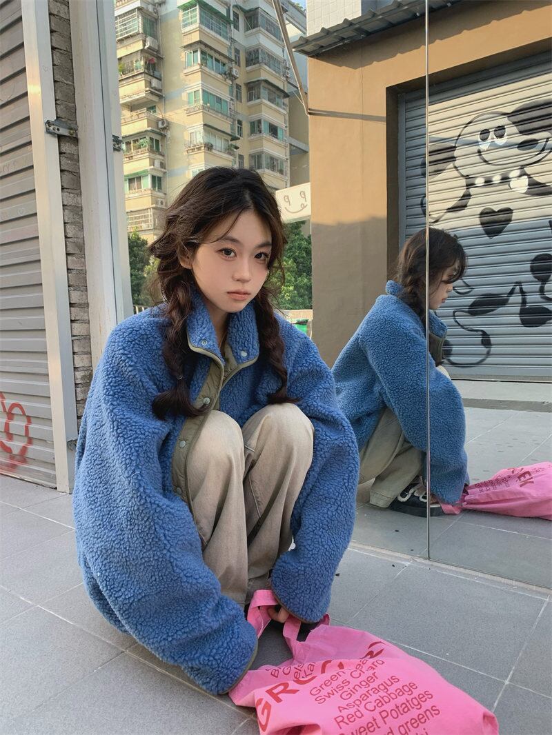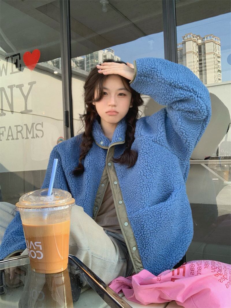 2024年新作 レトロ 設計感 両面着用可 ゆったり 長袖 フリース コート