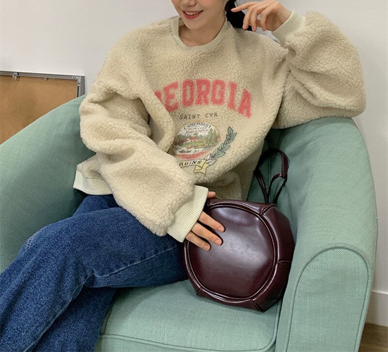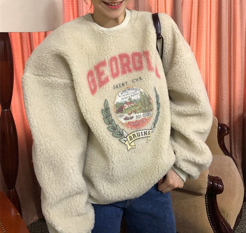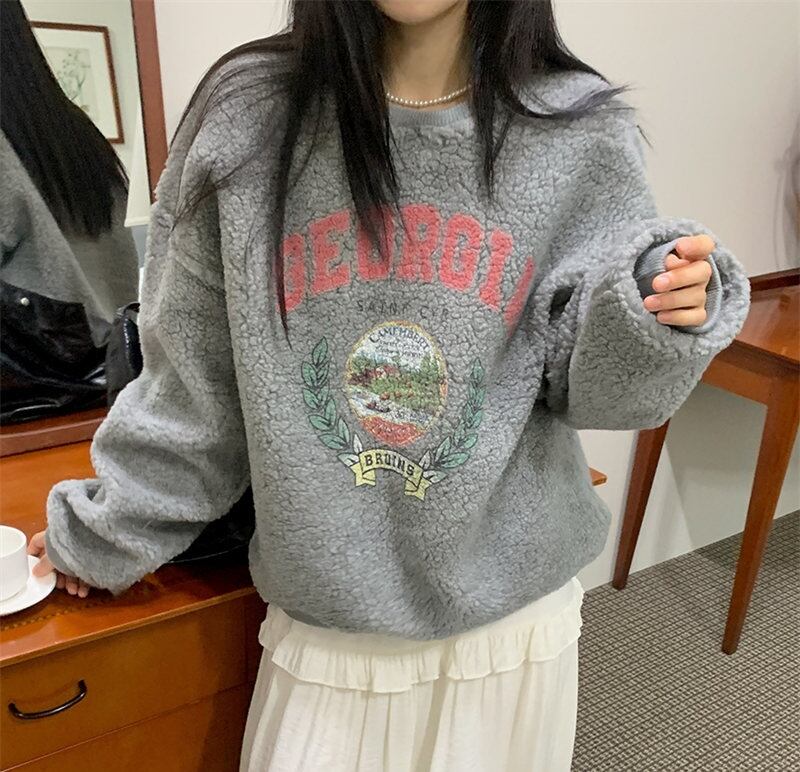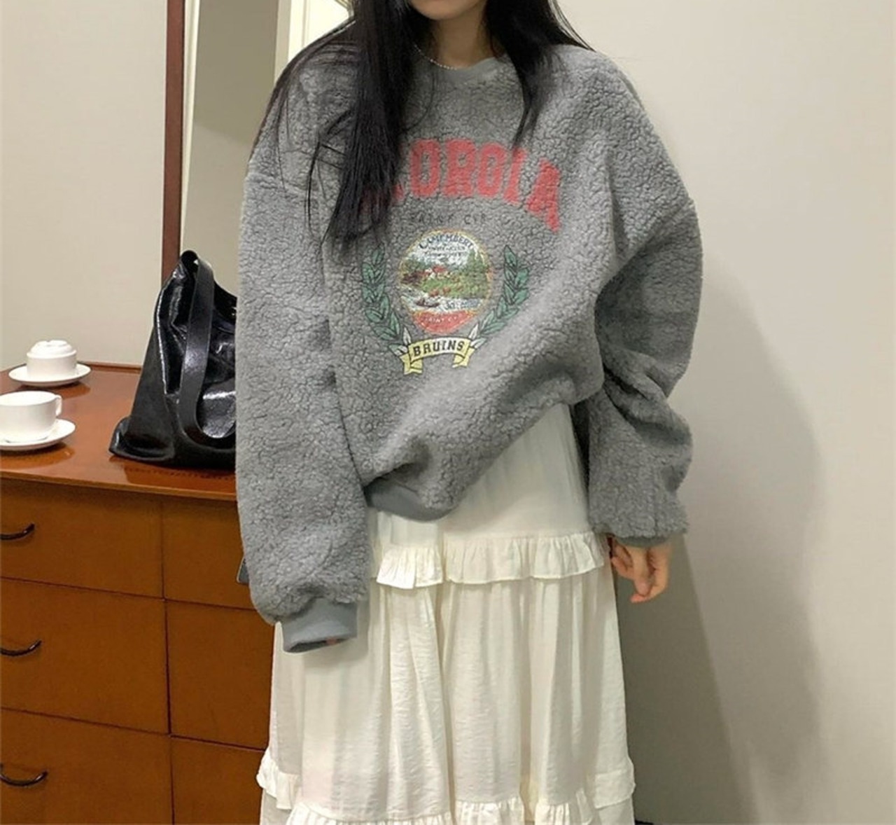 2024年新作 レトロ 設計感 ゆったり 長袖 フリース 防寒 トレーナー