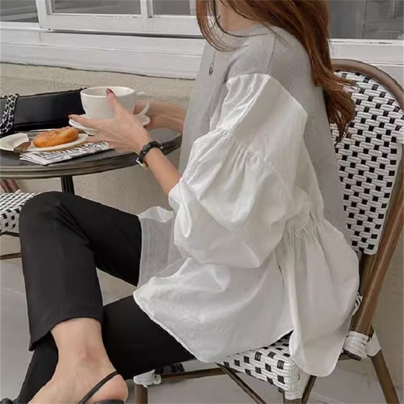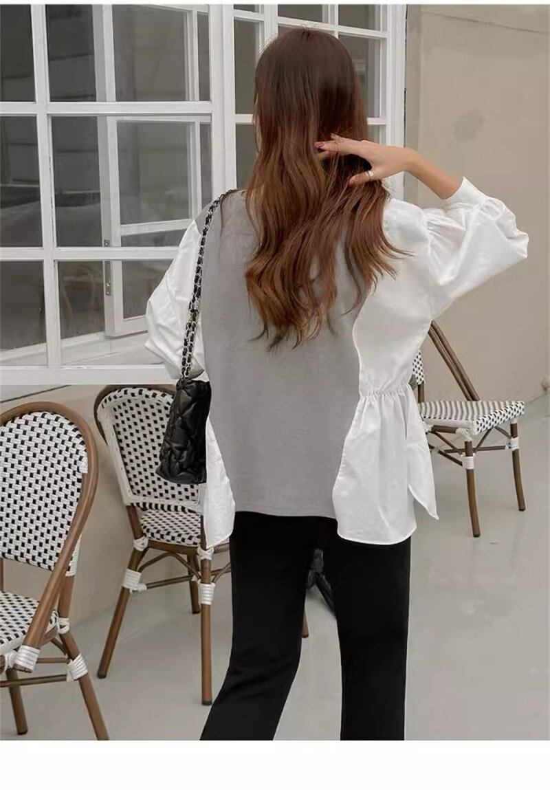 2024年春新作 設計感 気質 韓国系 トップス 配色 シャツ ブラウス