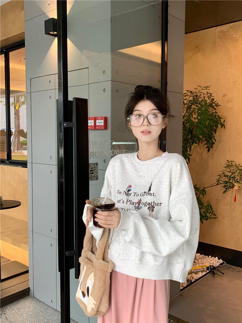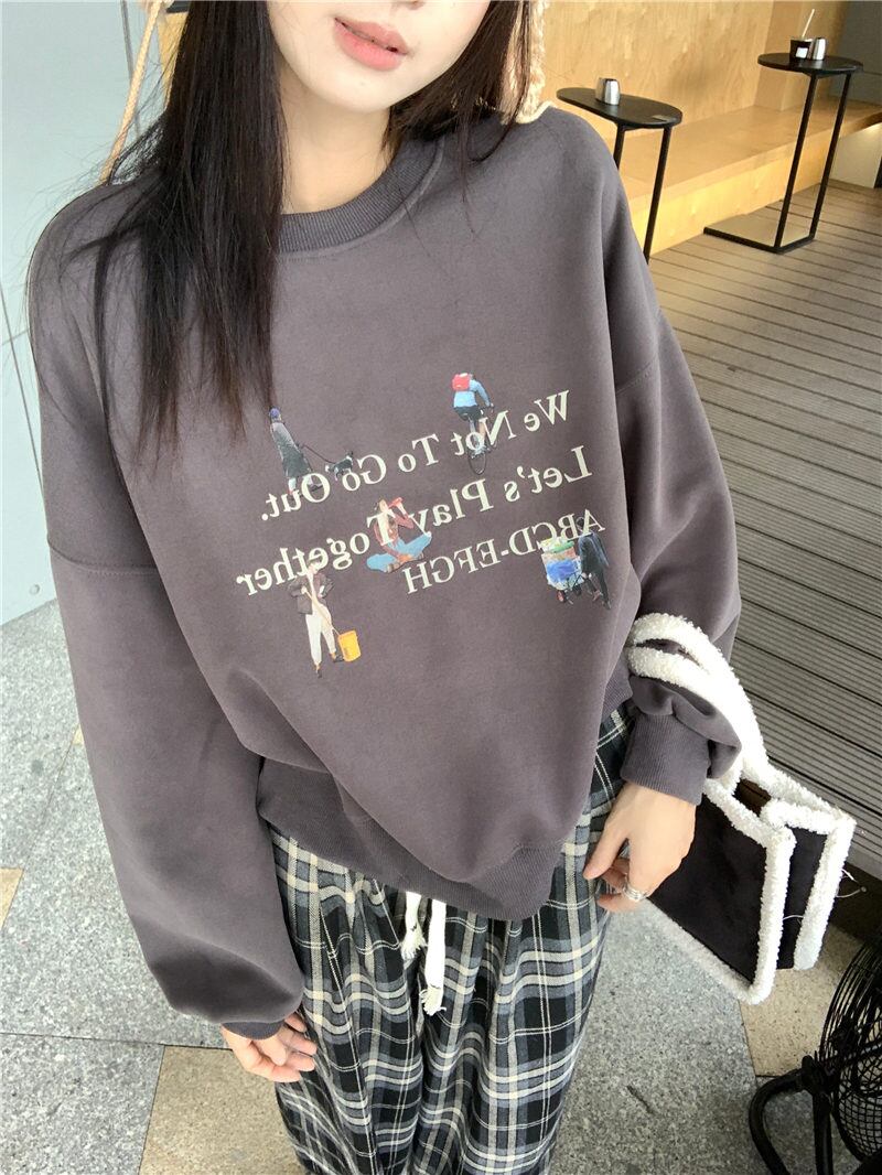INS秋冬新作 レトロ 設計感 ゆったり 長袖 韓国風 裏起毛 トレーナー