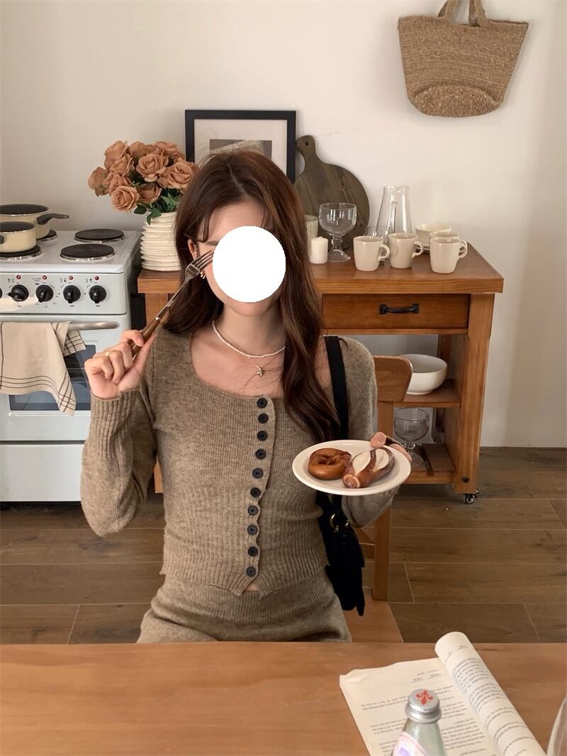 2023年秋冬新作 ニット カーディガン+セミロングスカート セット