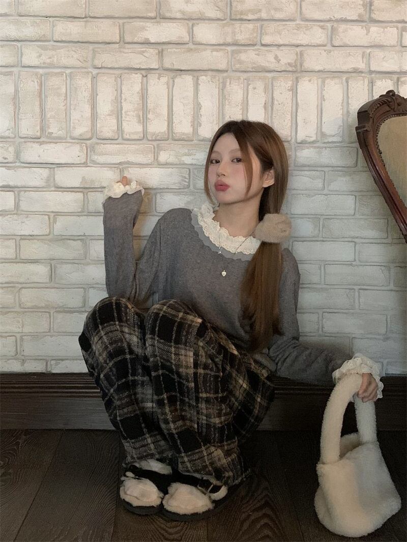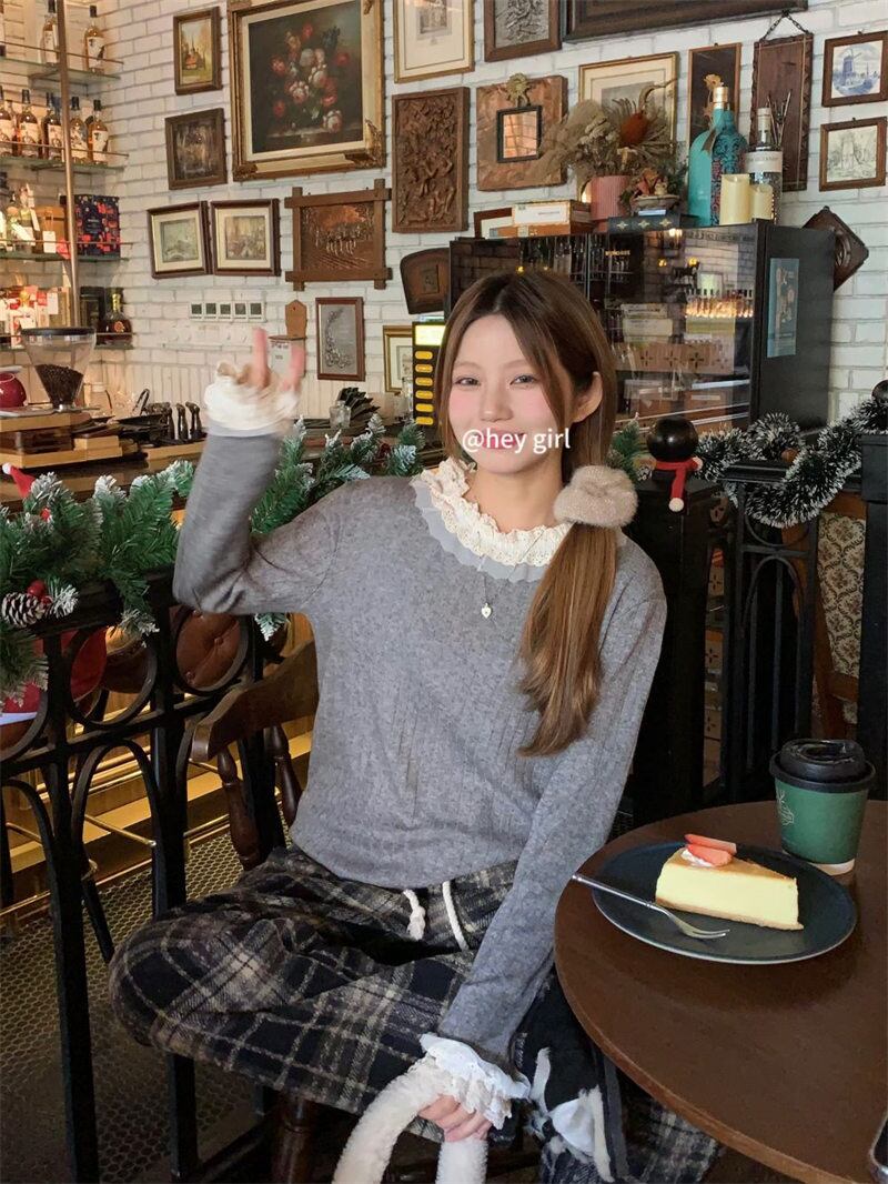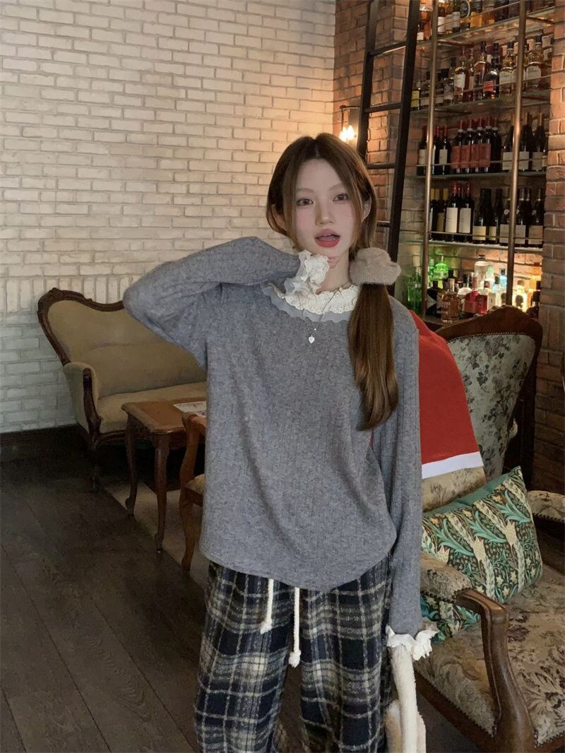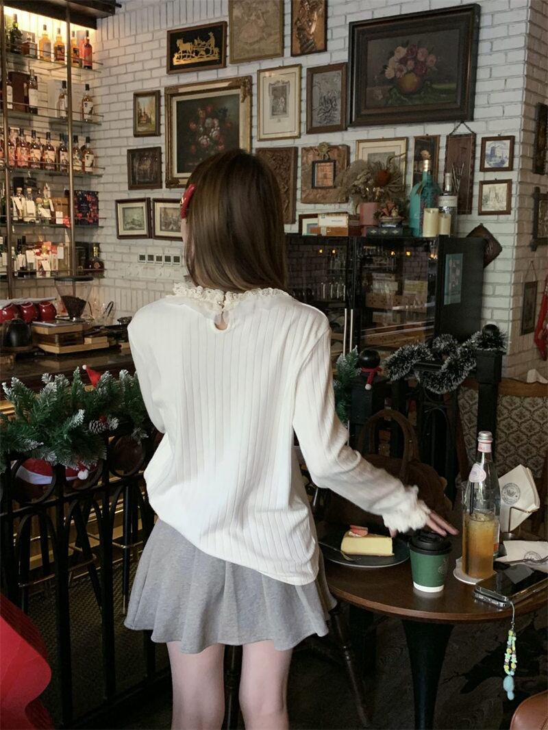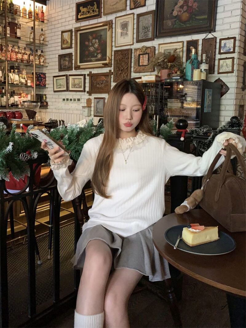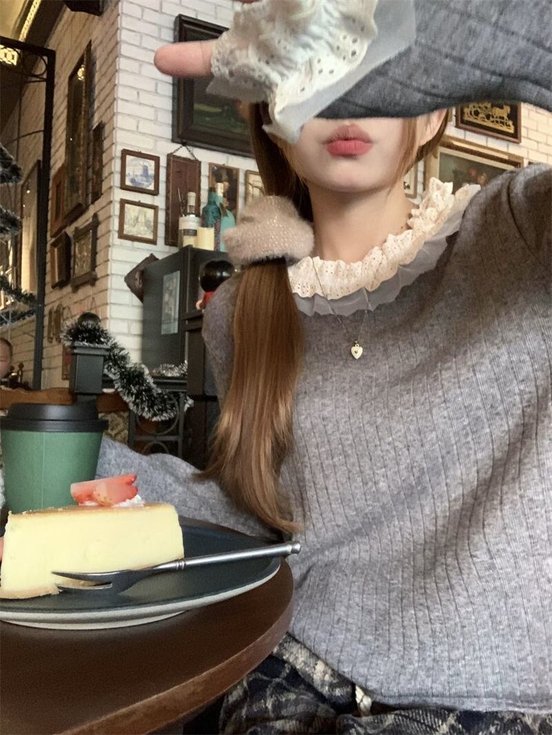 2023年冬新作 レトロ 優しい 合わせやすい 長袖 ニット生地 フリル セーター
